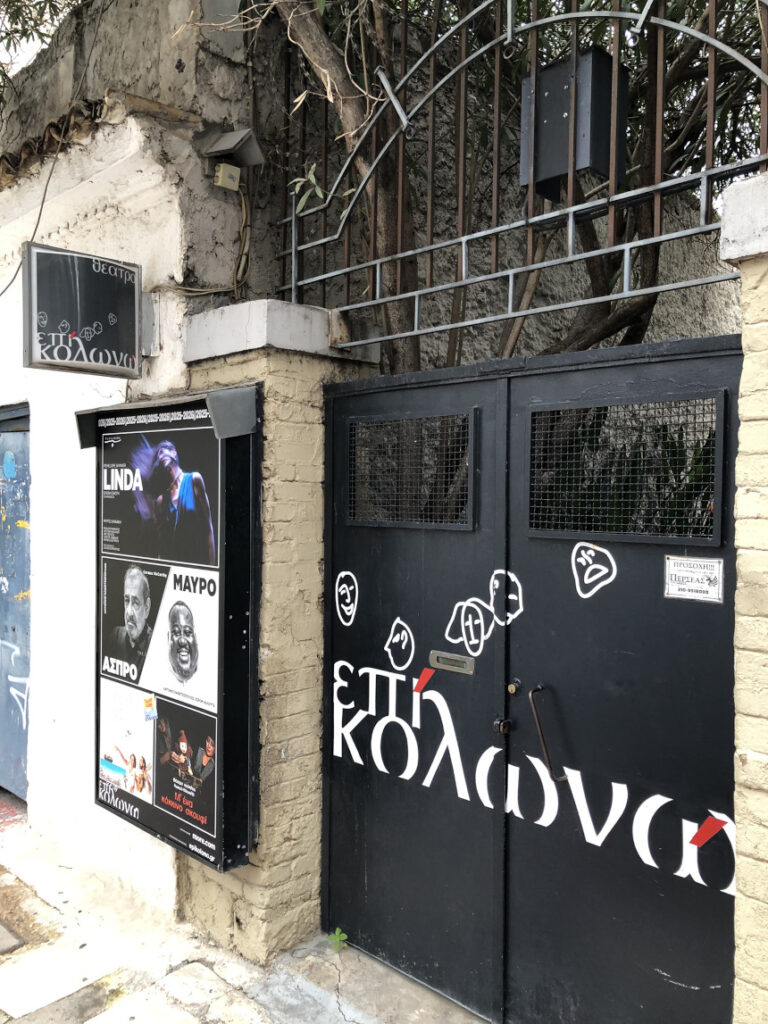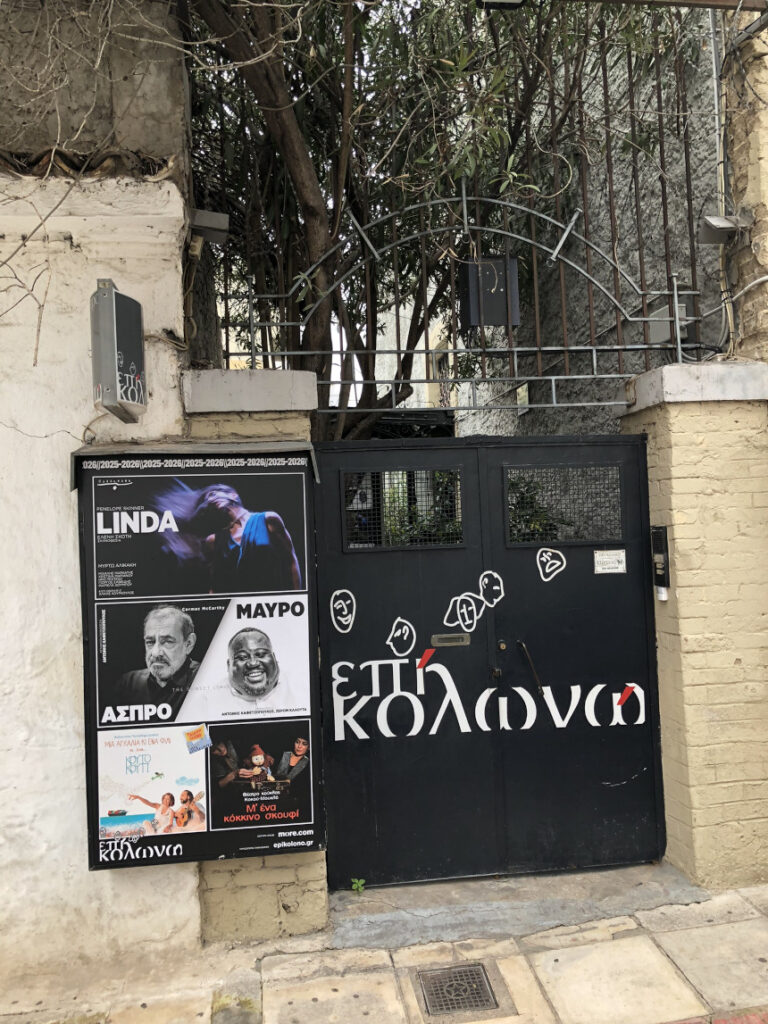 Σε μια γειτονιά που διατηρεί την αυθεντικότητά της, η μαύρη σιδερένια πύλη με το χαρακτηριστικό λογότυπο του Θεάτρου «Επί Κολωνώ» (Ναυπλίου 12 & Λένορμαν 94) ανοίγει έναν διαφορετικό κόσμο. Στεγασμένο σε ένα ιδιαίτερο κτίριο με πέτρινους τοίχους και μια εσωτερική αυλή-όαση, το «Επί Κολωνώ» δεν είναι απλώς ένας χώρος παραστάσεων, αλλά ένας ζωντανός οργανισμός τέχνης.