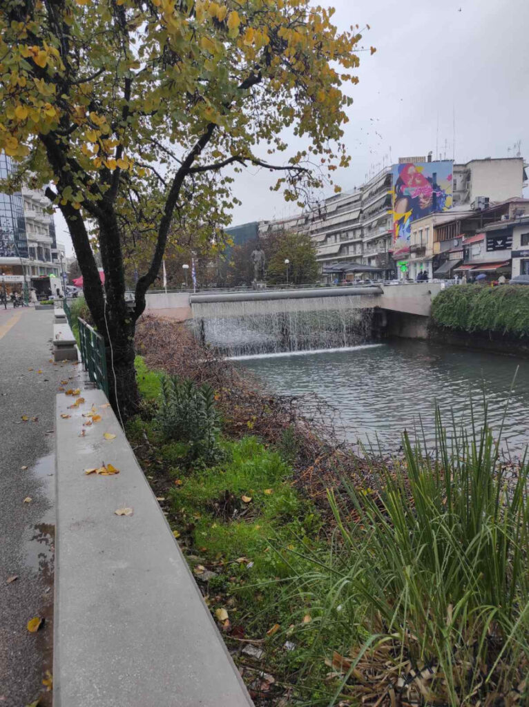 Με τη χθεσινή βροχή, η ροή είναι πιο ορμητική και ο ήχος των νερών που πέφτουν δυναμώνει, επισκιάζοντας τον θόρυβο των αυτοκινήτων. Ο Ληθαίος μοιάζει να έχει τη δική του μελωδία. Είναι ο ήχος της φύσης μέσα στον αστικό ιστό: το βουητό του νερού που πέφτει, η σταγόνα που σκάει στην επιφάνεια του ποταμού. Ακόμα και τα ξερά κλαδιά και η πλούσια, πράσινη βλάστηση στις όχθες δείχνουν πιο ζωντανά, ποτισμένα από την υγρασία της ημέρας.