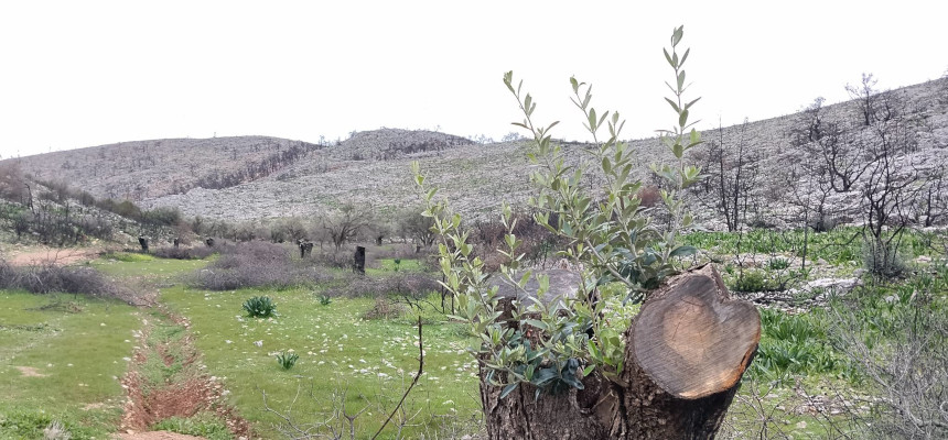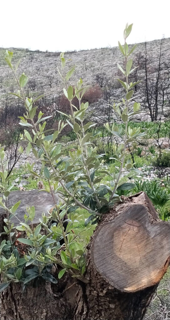 Όμως, μέσα στην καρδιά του καμένου τοπίου, ο φακός του Πέτρου αιχμαλώτισε το θαύμα. Από τον κομμένο, μαυρισμένο κορμό μιας ελιάς, ξεπήδησαν νέοι, ολοπράσινοι βλαστοί. Δεν ζήτησαν την άδεια από την καταστροφή. Δεν πτοήθηκαν από τη στάχτη. Απλώς βγήκαν στο φως, επίμονα και αθόρυβα, για να μας θυμίσουν ότι η φύση δεν παραδίδεται ποτέ.