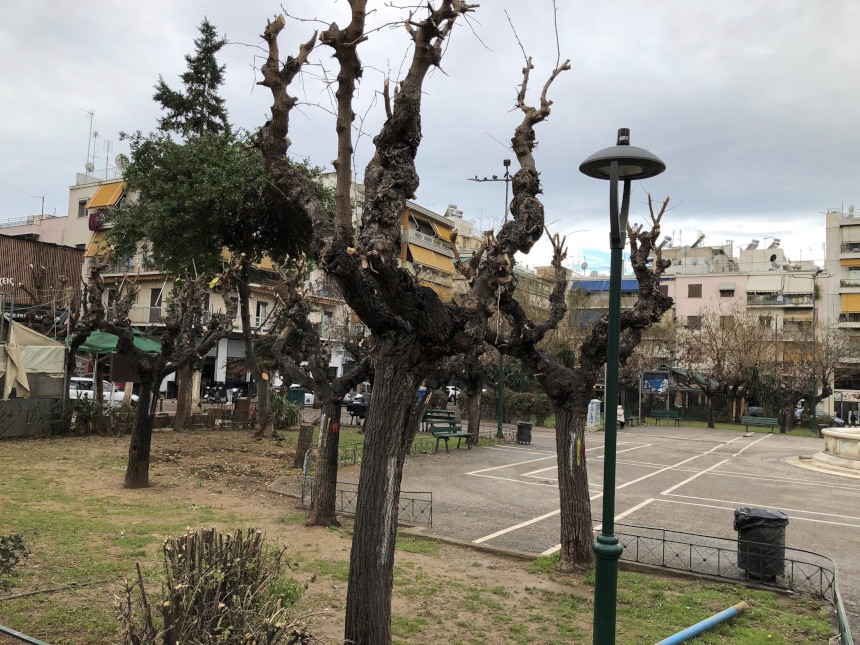 Στην Πλατεία Σωτήρη Πέτρουλα στον Κολωνό, το τοπίο άλλαξε για λίγο. Τα συνεργεία Πρασίνου του Δήμου Αθηναίων ολοκλήρωσαν το κλάδεμα και οι μουριές της πλατείας στέκουν τώρα γυμνές, με τους κορμούς τους να θυμίζουν σχεδόν γλυπτά πάνω στο γκρίζο του ουρανού. Για τον περαστικό που δεν γνωρίζει, η εικόνα ίσως μοιάζει αυστηρή, ίσως και λίγο απότομη.