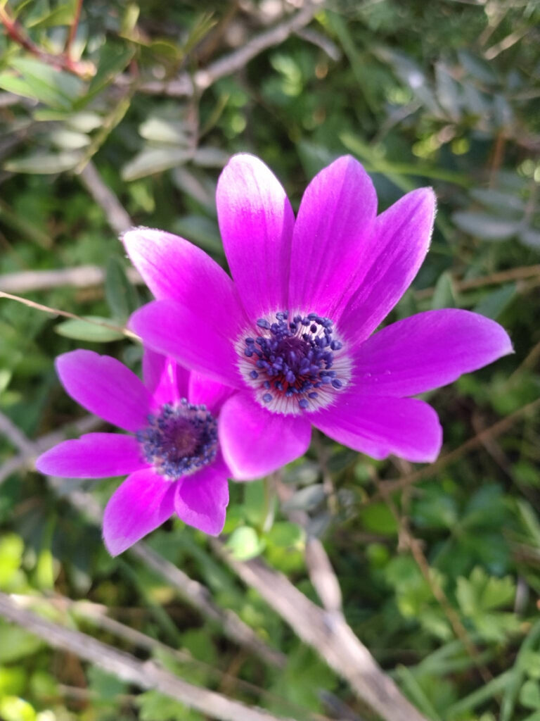 Αν πλησιάσετε λίγο πιο κοντά (χωρίς να τις κόψετε!), προσέξτε την καρδιά τους: Στην ανεμώνη, το κέντρο περιβάλλεται από έναν πυκνό δακτύλιο με πολλούς μικρούς στήμονες, συνήθως σε σκούρο μπλε ή μαύρο χρώμα. Στην παπαρούνα, στο κέντρο υπάρχει μια χαρακτηριστική κάψουλα που μοιάζει με μικρή “κουδουνίστρα”, η οποία αργότερα θα περιέχει τους σπόρους. Αν δείτε ένα λουλούδι σε έντονο μωβ, μπλε ή λευκό, τότε είναι σχεδόν βέβαιο πως πρόκειται για ανεμώνη.