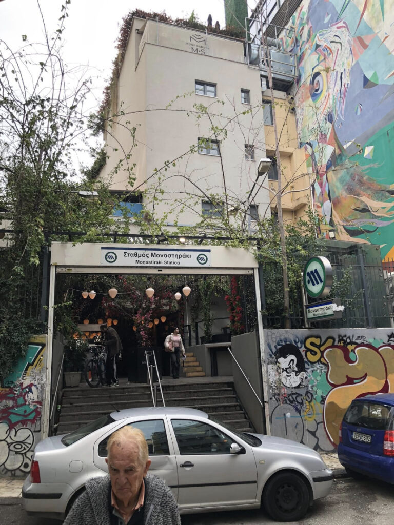 Η είσοδος του σταθμού, “πνιγμένη” στο πράσινο και περιτριγυρισμένη από τα πολύχρωμα murals της Αθήνας, αποτελεί το τέλειο σύνορο ανάμεσα στην αρχαία αγορά και τη μποέμικη γειτονιά που μας περιμένει. Προχωρώντας προς τα μέσα, τα πεζοδρόμια είναι πιο άδεια από το συνηθισμένο. Αυτό όμως είναι και το προνόμιο του χειμερινού περιπατητή: μπορείς να παρατηρήσεις τις λεπτομέρειες που το καλοκαίρι προσπερνάς.