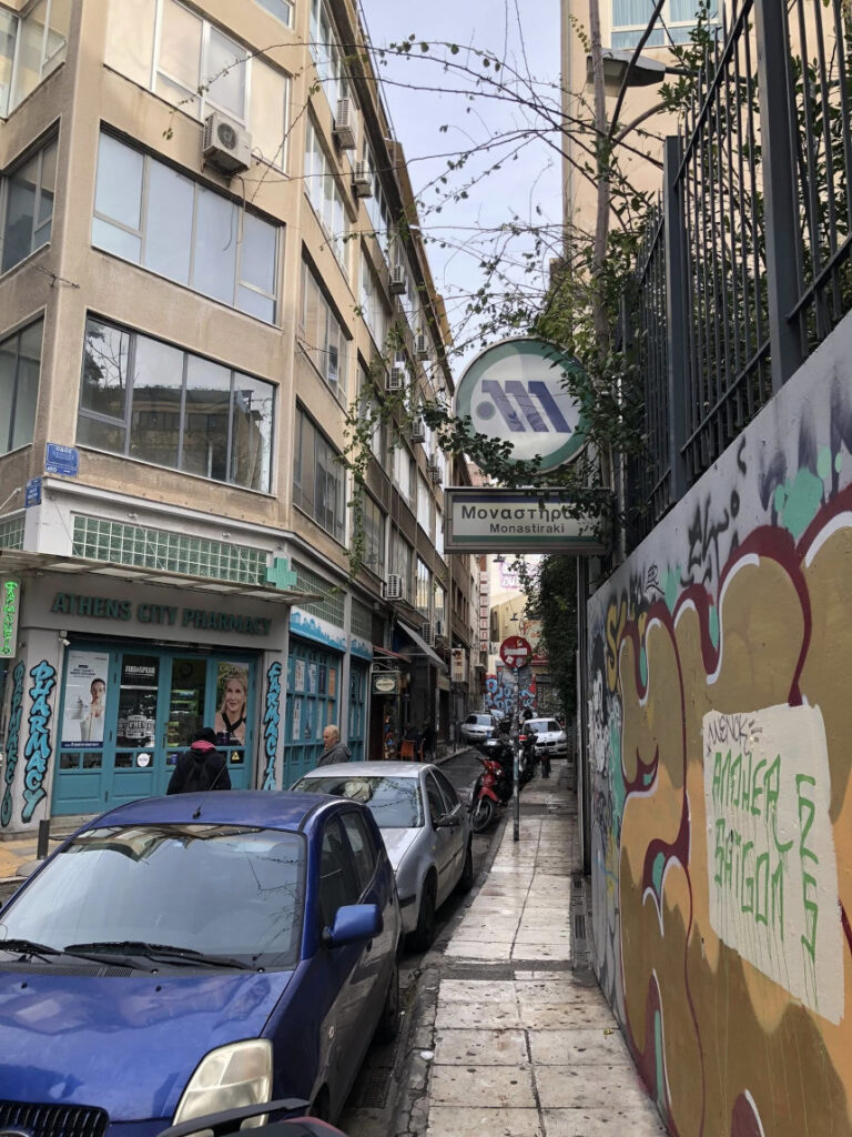 Υπάρχουν μέρες που η Αθήνα δεν χρειάζεται τον καυτό ήλιο ή τα πλήθη των τουριστών για να σου διηγηθεί τις ιστορίες της. Χρειάζεται μόνο μια συννεφιασμένη μέρα του Φλεβάρη, άνετα παπούτσια και τη διάθεση να χαθείς στα στενά που ενώνουν το Μοναστηράκι με τη συνοικία του Ψυρρή. Η βόλτα ξεκινά από το εμβληματικό Μοναστηράκι. Ο σταθμός του Μετρό, ένα από τα πιο πολυσύχναστα σημεία της πόλης, αυτή την εποχή μοιάζει να αναπνέει με άλλους ρυθμούς.