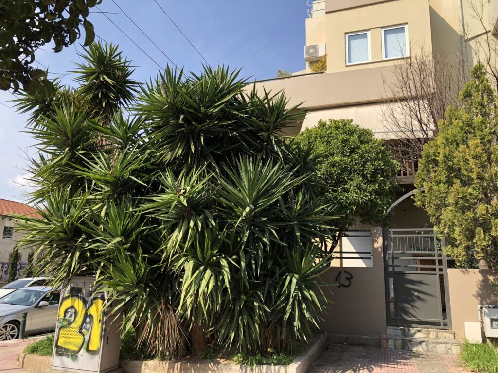 Είναι πραγματικά παρήγορο να βλέπει κανείς τέτοιες εικόνες από γειτονιές της Αθήνας. Η Κολοκυνθού, αν και συχνά θεωρείται μια πιο βιομηχανική ή πυκνοκατοικημένη περιοχή, κρύβει αυτές τις μικρές οάσεις που αλλάζουν τελείως την ψυχολογία του περιπατητή. Οι φωτογραφίες αποτυπώνουν ακριβώς αυτή την αντίθεση. Στη φωτογραφία ο εντυπωσιακός όγκος της γιούκας (Yucca) δεσπόζει στο πεζοδρόμιο. Δίνει έναν εξωτικό τόνο και, παρόλο που “διεκδικεί” τον χώρο του, προσφέρει μια πλούσια πράσινη κουρτίνα μπροστά από την κατοικία.