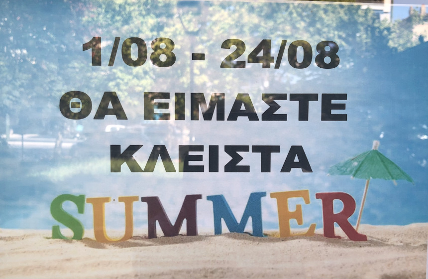 Είναι αρκετά συνηθισμένο στην Ελλάδα, ειδικά τον Αύγουστο, να κλείνουν ορισμένα μαγαζιά. Ο Αύγουστος είναι ο κατεξοχήν μήνας διακοπών για τους Έλληνες. Πολλοί ιδιοκτήτες μαγαζιών και εργαζόμενοι κλείνουν τις επιχειρήσεις τους για να κάνουν τις καλοκαιρινές τους διακοπές, συχνά επιστρέφοντας στα χωριά τους ή τα νησιά. Ενώ σε τουριστικές περιοχές (όπως τα νησιά) τα μαγαζιά συνήθως μένουν ανοιχτά για να εξυπηρετήσουν τους τουρίστες, σε μη τουριστικές περιοχές των μεγάλων πόλεων, όπως η Αθήνα, μπορεί να παρατηρηθεί μειωμένη κίνηση ή ακόμα και κλειστά καταστήματα. Τα μεγάλα πολυκαταστήματα και τα σούπερ μάρκετ λειτουργούν συνήθως κανονικά, με εξαίρεση την αργία του Δεκαπενταύγουστου. Οι φωτογραφίες είναι χθεσινές από μαγαζιά γύρω στην πλατεία Αττικής.