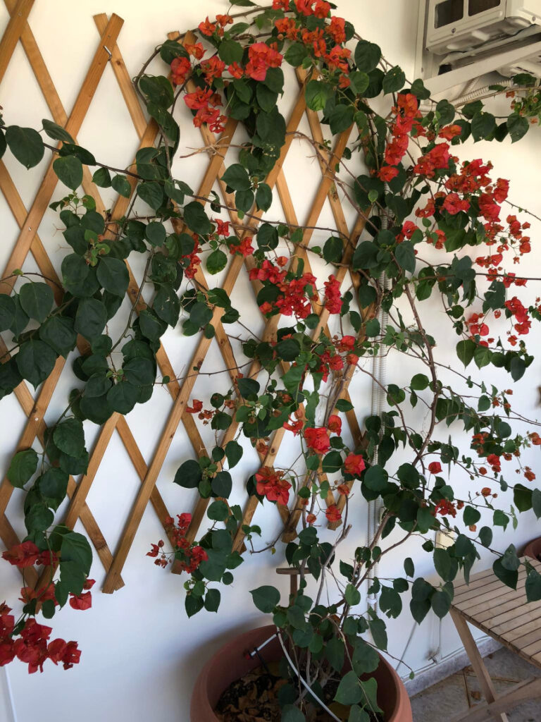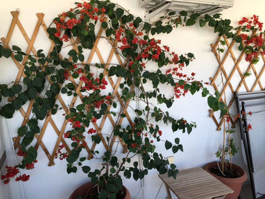 Στον 7ο όροφο του κτιρίου στη Νίσαιας, ανάμεσα στον αστικό ορίζοντα και τον ήλιο της Μεσογείου, μια βουκαμβίλια αποφάσισε φέτος να διηγηθεί τη δική της ιστορία. Δεν ήταν μια συνηθισμένη βουκαμβίλια. Ήταν η βουκαμβίλια του Κώστα και της Άννυς. Για καιρό, το φυτό μεγάλωνε διακριτικά, σκαρφαλώνοντας στην ξύλινη πέργκολα του μπαλκονιού. Τα φύλλα της ήταν καταπράσινα, υγιή, αλλά τα κόκκινα λουλούδια, τα περίφημα βράκτεια, εμφανίζονταν δειλά, σαν να φοβούνταν το ύψος.