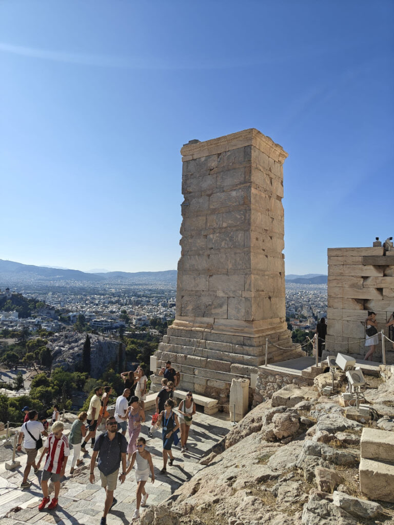 Κατά την επίσκεψη της Άννυς και της Κριστίν στο Μουσείο της Ακρόπολης, μπόρεσαν πέρα από τους αρχαιολογικού θησαυρούς που περιείχε να απολαύσουν μια μοναδική θέα τόσο προς τον Βράχο της Ακρόπολης όσο και προς τον λόφο του Λυκαβηττού. Από τους μεγάλους υαλοπίνακες του μουσείου, η θέα προς την Ακρόπολη είναι εντυπωσιακή. Ο Παρθενώνας, τα Προπύλαια και το Ερέχθειο υψώνονται επιβλητικά, σαν να αποτελούν συνέχεια του ίδιου του μουσείου. Μπορείς να παρατηρήσεις κάθε λεπτομέρεια των αρχαίων μνημείων, ενώ ταυτόχρονα βρίσκεσαι σε έναν σύγχρονο χώρο, σχεδιασμένο για να αναδεικνύει την ιστορία τους.