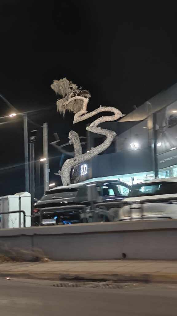 Ένα ιδιαίτερο, στριφτό δέντρο, που μοιάζει σαν να το έχει σμιλέψει κάποιος γλύπτης. Πρόκειται για το γλυπτό “Άγρυπνη Σιωπή” (Sleepless Silence) του καλλιτέχνη Νίκου Ραμπάκουλα, το οποίο έχει τοποθετηθεί στον παράδρομο της Λεωφόρου Κηφισού. Η “Άγρυπνη Σιωπή” είναι ένα έργο τέχνης που αναπαριστά ένα δέντρο, του οποίου οι ρίζες είναι εμφανείς, ενώ ο κορμός και τα κλαδιά του σχηματίζουν ένα περίπλοκο σχήμα, που μοιάζει με σώμα. Το έργο είναι κατασκευασμένο από ρητίνη και άλλα υλικά, τα οποία του δίνουν μια ρεαλιστική υφή, ενώ η απουσία φύλλων και η φωτεινή του όψη το κάνουν να ξεχωρίζει στο νυχτερινό τοπίο.