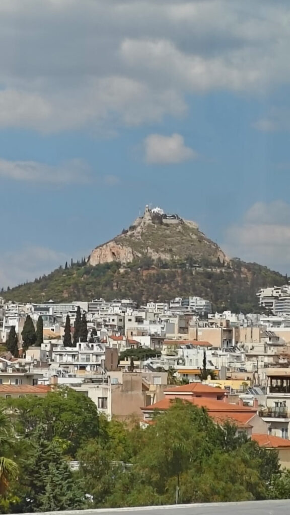 Κοιτώντας προς την αντίθετη πλευρά, ο λόφος του Λυκαβηττού ξεχωρίζει στον ορίζοντα. Στην κορυφή του, το εκκλησάκι του Αγίου Γεωργίου φαίνεται σαν ένα μικρό στολίδι, ενώ η πλούσια βλάστηση του λόφου δημιουργεί μια όμορφη αντίθεση με τον αστικό ιστό της πόλης. Αυτή η θέα προσφέρει μια ολοκληρωμένη εικόνα της Αθήνας, συνδυάζοντας την αρχαία κληρονομιά με τη φυσική ομορφιά και το σύγχρονο τοπίο. Γίνεται να μην αρέσει αυτή Αθήνα. Και είναι συμπτωματικό και τυχαίο που έρχονται από όλη τη γη για να τα δουν αυτά μια φορά στη ζωή τους;