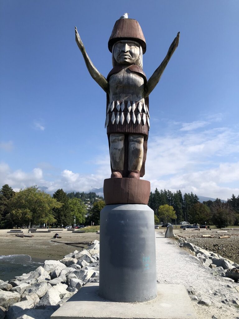 Το είδαμε στην παραλία του Αμπλσάϊτ στο West Vancouver… Ένα εντυπωσιακό άγαλμα που απεικονίζει μια γυναίκα με υψωμένα χέρια, η οποία ονομάζεται “η φιλόξενη φιγούρα”. Σύμφωνα με την πλάκα, αφιερώθηκε από το Έθνος Squamish στους κατοίκους του Δυτικού Βανκούβερ και συμβολίζει το καλωσόρισμα και τη φιλοξενία. Ενδιαφέρον να δούμε τι είναι τυπωμένο πάνω στην πινακίδα…