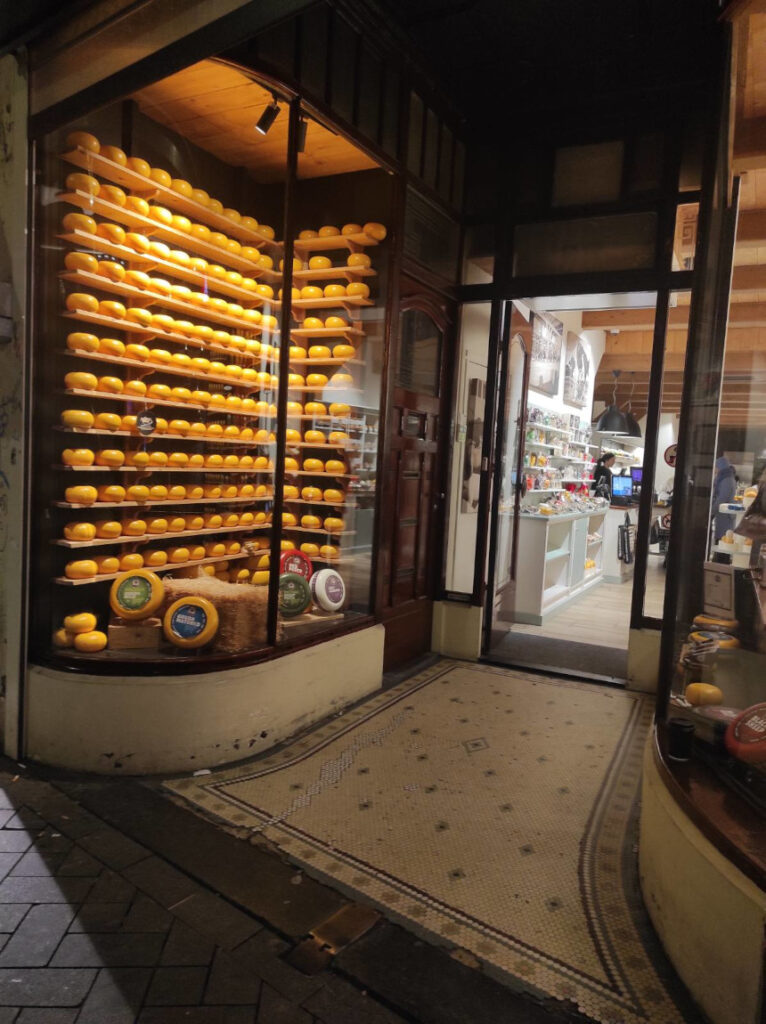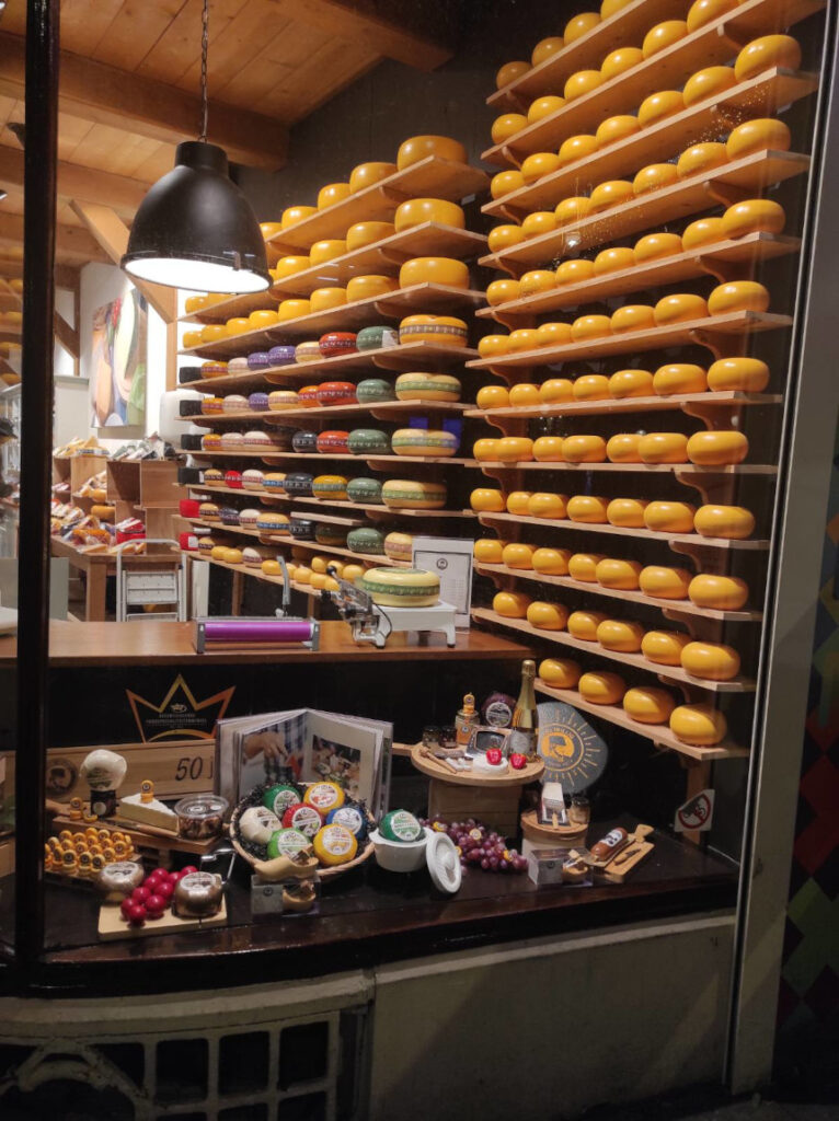 Στο Άμστερνταμ, το τυρί είναι κάτι περισσότερο από μια λιχουδιά. Είναι ιστορία, τέχνη και μια γιορτή της γης. Αυτό το κατάστημα, ένα χαρακτηριστικό “Kaasboer” (τυροπωλείο), ενσαρκώνει τέλεια την περηφάνια των Κάτω Χωρών για το πιο διάσημο προϊόν τους. Μια επίσκεψη εδώ είναι ένα ταξίδι αισθήσεων, όπου η παράδοση συναντά την πιο απρόσμενη καινοτομία. Όπως φαίνεται καθαρά, το κατάστημα μοιάζει με θησαυροφυλάκιο. Καθώς μπαίνεις, το βλέμμα σου αιχμαλωτίζεται από τους ψηλούς ξύλινους τοίχους, όπου στοιβάζονται δεκάδες (αν όχι εκατοντάδες) ολόκληρα, χρυσαφένια κεφάλια τυριού.