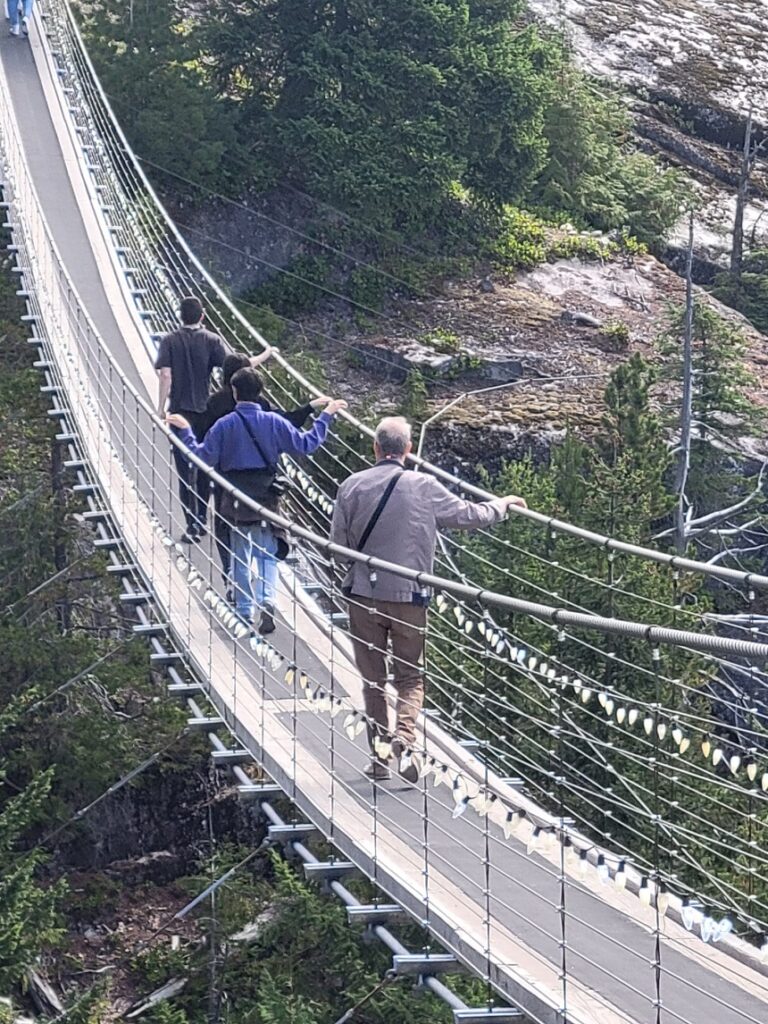 Έχουμε κάνει ήδη τρία σημειώματα από αυτή την την εκδρομή μας. Ζήσαμε ένα τοπιο συγκλονιστικό, σημείο είναι η Sky Pilot Suspension Bridge (Κρεμαστή Γέφυρα). Η διάσχισή της είναι μια μικρή περιπέτεια, μια αίσθηση ότι περπατάς στον αέρα. Κάθε βήμα ανταμείβεται με μια ακόμα πιο θεαματική φωτογραφία, ειδικά αν κοιτάξεις προς την κορυφή του Sky Pilot. Αλλά και η μεπειρία πάνω στην κρεμαστή γέφυρα ήταν το κάτι άλλο. Κι όποιος λέει ότι δε φαάται, λέει ψέματα.