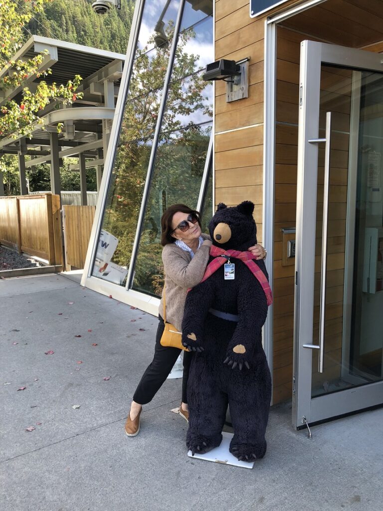 Η μονοήμερη εκδρομή μας στο Sea to Sky Gondola στο Squamish ήταν μια ολοκληρωμένη εμπειρία φύσης, περιπέτειας και, όπως φαίνεται, αγορών! Η πρώτη στάση για αναμνηστική φωτογραφία έγινε ακριβώς στην είσοδο. Η Σούλα απαθανατίστηκε δίπλα στον φιλικό, χνουδωτό αρκούδο – κούκλα, σηματοδοτώντας με χαμόγελο την έναρξη της ορεινής περιπέτειας. Έτσι η μέρα μας ξεκίνησε με παιχνιδιάρικη διάθεση!