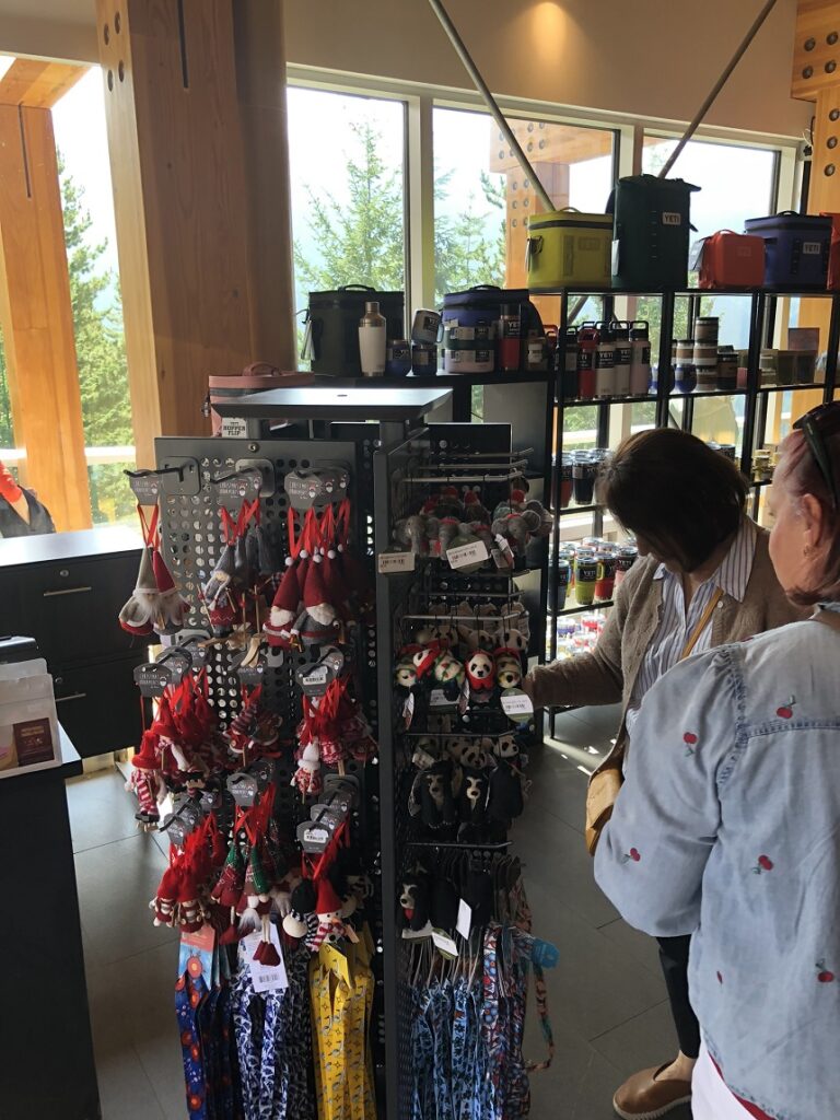Η περιπέτεια ολοκληρώθηκε με επιτυχία και μερικές απαραίτητες αγορές! Η Σούλα και η Έστερ φωτογραφήθηκαν (χωρίς να το ξέρουν) την ώρα που ψώνιζαν από το μαγαζί αναμνηστικών που βρίσκεται στην κορυφή του βουνού. Το Summit Gift Shop είναι ιδανικό για να βρείτε ρούχα για το βουνό ή μοναδικά τοπικά δώρα, εξασφαλίζοντας ότι θα κρατήσετε μαζί σας, ένα κομμάτι της εμπειρίας από το Sea to Sky.