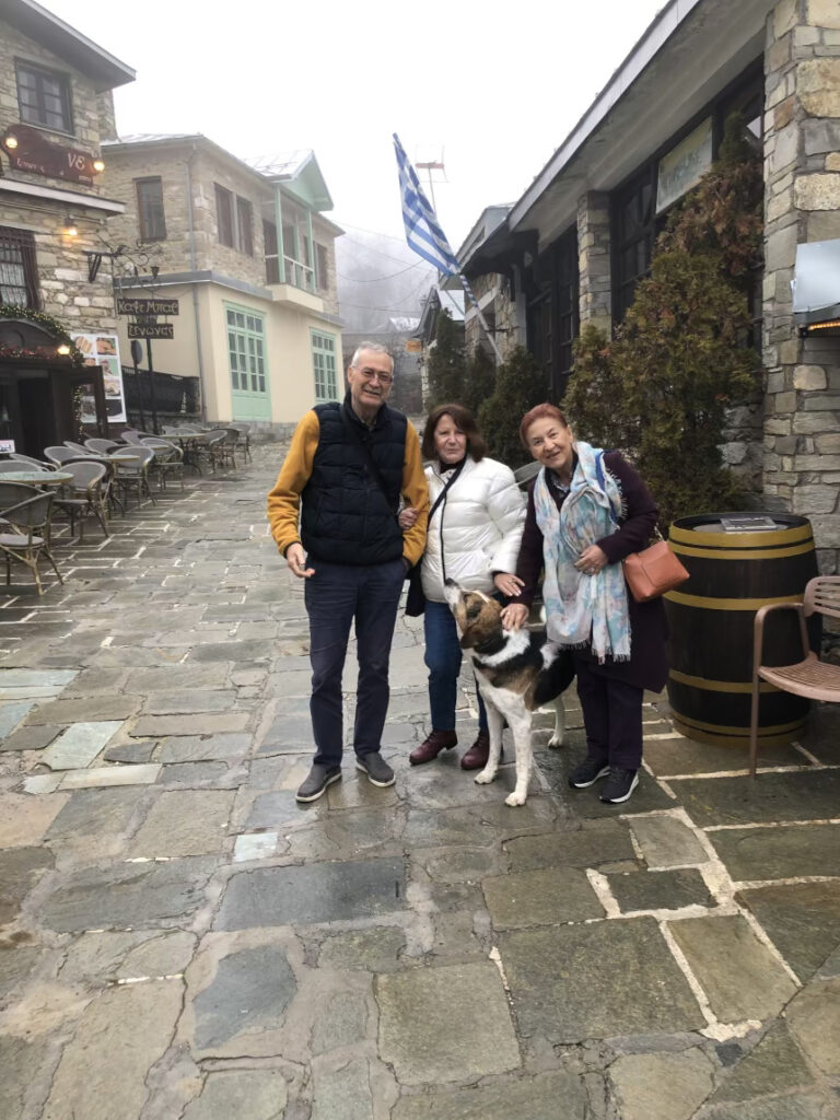 Αφήσαμε για μια μέρα πίσω μας την όμορφη Καστοριά, όπου απολαμβάνουμε τις χειμερινές διακοπές μας και ανηφορίσαμε για το θρυλικό Νυμφαίο του Αμυνταίου. Παρόλο που η ομίχλη και το ψιλόβροχο είχαν τυλίξει τον οικισμό, η ατμόσφαιρα ήταν μοναδική. Περιπλανιόμασταν στα γραφικά πετρόχτιστα καλντερίμια με τη Σούλα και τη Χάρις, θαυμάζοντας την παραδοσιακή αρχιτεκτονική και την ηρεμία του τοπίου. Και τότε συνέβη το αναπάντεχο: Ένας πανέμορφος, φιλικός σκυλούνος αποφάσισε ότι η παρέα μας ήταν η καλύτερη! Μας πλησίασε στην κεντρική πλατεία, πόζαρε μαζί μας (μάλλον έκλεψε και λίγη από τη δόξα!) και μας γέμισε χαρά. Η καλύτερη αυθόρμητη προσθήκη στην ομάδα των διακοπών μας!