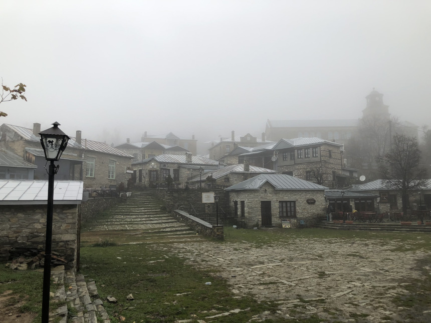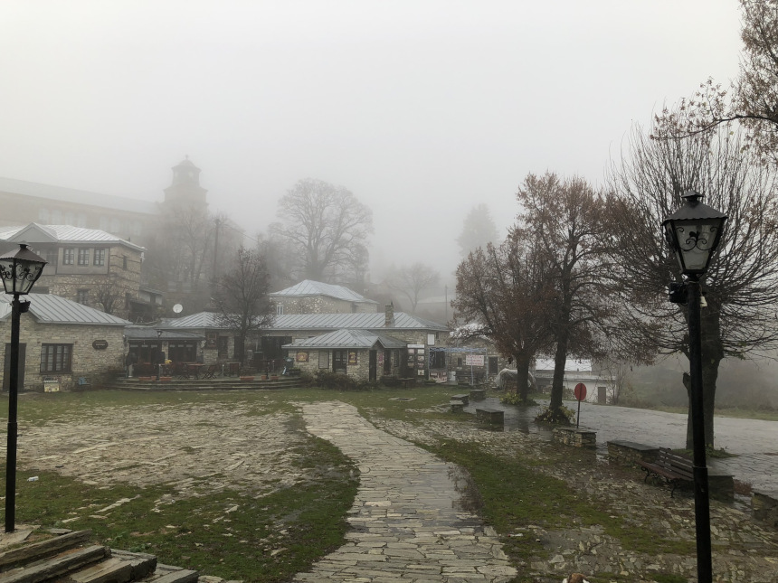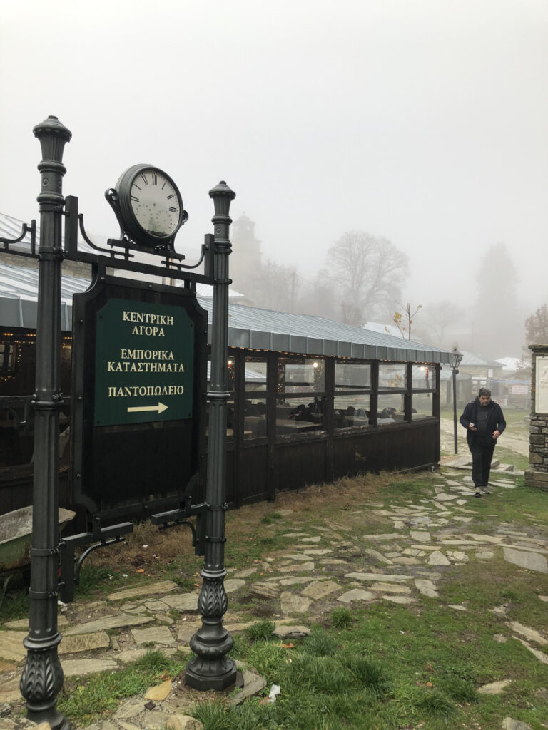 Η καρδιά του χωριού είναι η κεντρική του πλατεία. Ακόμη και με την ομίχλη να καλύπτει τα πάντα, η αίσθηση του ιστορικού κέντρου είναι έντονη. Στην είσοδο, ένα παλιό ρολόι στεφανώνει την πινακίδα που σε καθοδηγεί προς την «Κεντρική Αγορά», τα «Εμπορικά Καταστήματα» και το «Παντοπωλείο». Η ίδια η πλατεία, με τα γύρω μαγαζιά και τα λιτά παγκάκια, δίνει την εντύπωση ενός σκηνικού βγαλμένου από παλιά ελληνική ταινία.