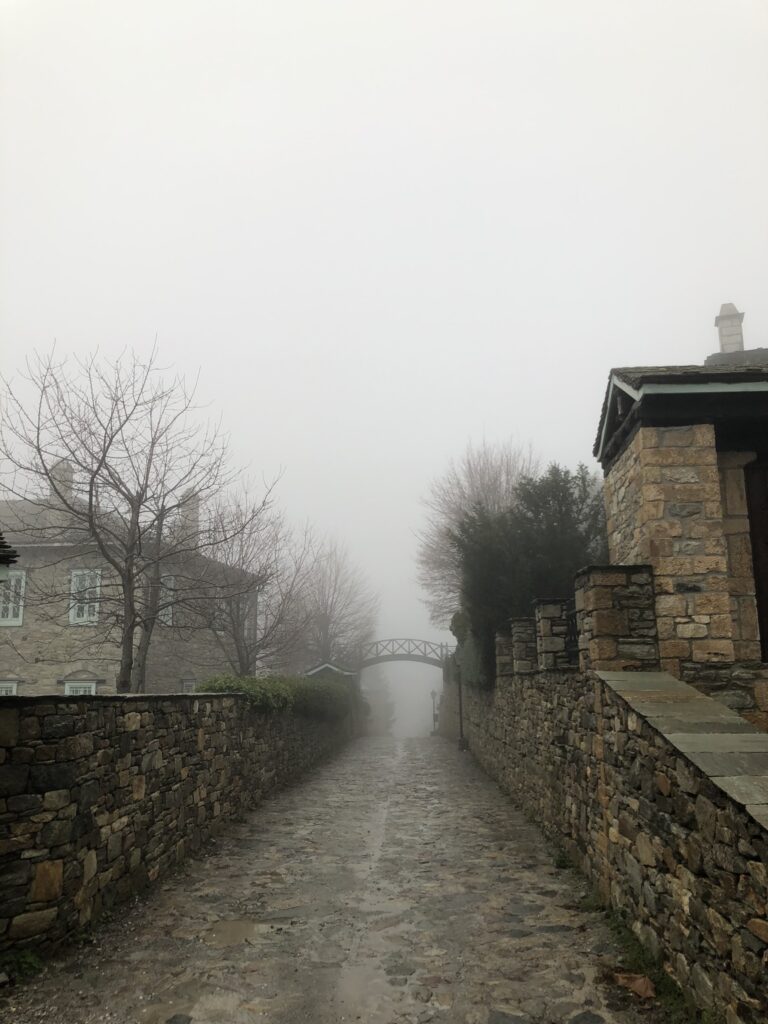 Είτε το έχετε επισκεφθεί κάτω από τον λαμπερό ήλιο, είτε τυλιγμένο στη χειμωνιάτικη ομίχλη, το Νυμφαίο της Φλώρινας είναι ένα μέρος που μένει αξέχαστο. Εμείς βρεθήκαμε εκεί μια μέρα με ελαφρύ ψιλόβροχο και πυκνή ομίχλη, και η εμπειρία ήταν απλώς μαγική. Από την πρώτη στιγμή που μπαίνεις στον οικισμό, νιώθεις ότι έχεις περάσει σε άλλη εποχή. Η ομίχλη λειτουργεί σαν φίλτρο, σβήνοντας τις άκρες του τοπίου και αφήνοντας μόνο τις σιλουέτες των γυμνών δέντρων και των χαμηλών κτιρίων να ξεπροβάλλουν.