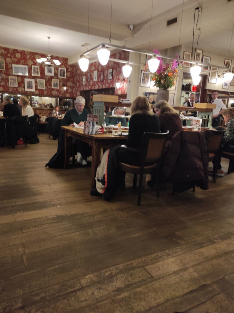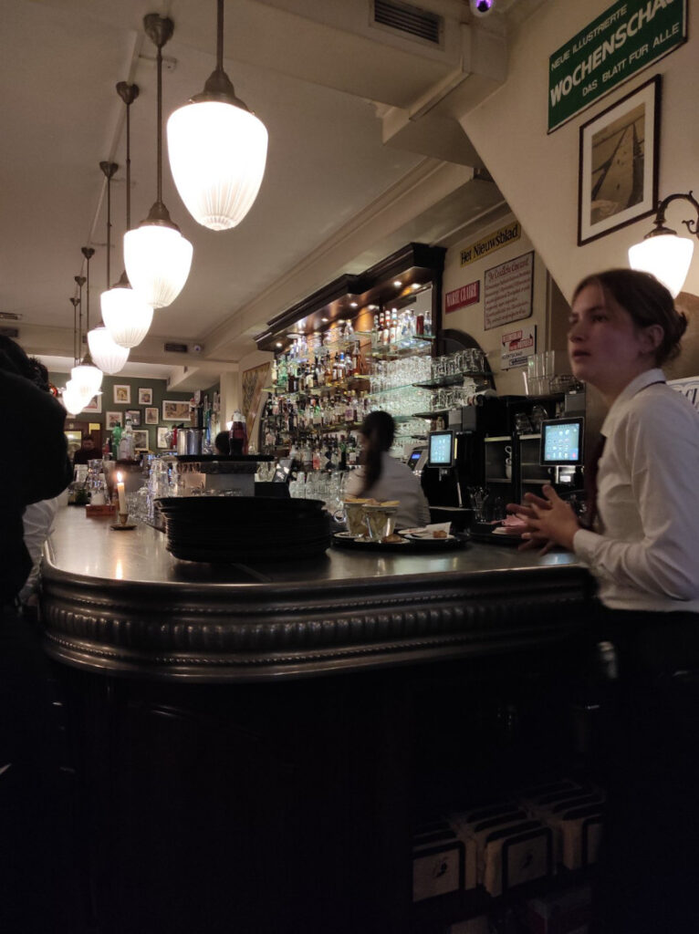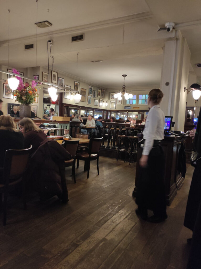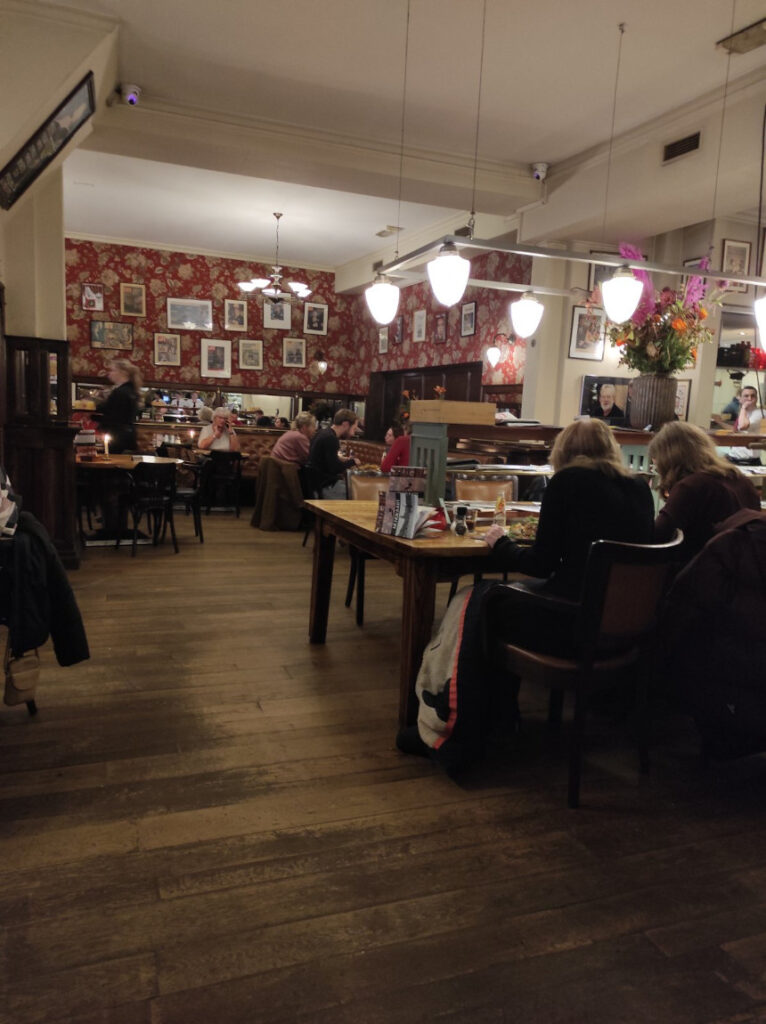 Στην καρδιά της Ουτρέχτης, μακριά από τη βιασύνη της ημέρας, υπάρχει ένα μέρος που είναι κάτι παραπάνω από ένα απλό καφέ-μπιστρό. Είναι ένα καταφύγιο για την ψυχή και το πνεύμα, ένας χώρος όπου η μυρωδιά του φρέσκου καφέ αναμειγνύεται με αυτήν του παλιού χαρτιού. Από την πρώτη στιγμή που περνάς το κατώφλι, νιώθεις τη ζεστή αγκαλιά του χώρου. Το ξύλινο πάτωμα με την πατίνα του χρόνου, οι τοίχοι ντυμένοι με ένα ζωντανό κόκκινο φλοράλ μοτίβο και οι δεκάδες κορνίζες με ασπρόμαυρες φωτογραφίες, δημιουργούν μια ατμόσφαιρα που θυμίζει σαλόνι παλιάς εποχής, ίσως και μια ατμοσφαιρική βιβλιοθήκη…