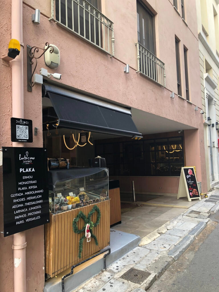 Ήταν ένα ήσυχο μεσημέρι του Δεκεμβρίου στην Πλάκα. Ο αέρας ήταν δροσερός, κουβαλώντας τις μυρωδιές από τα ψητά και τα μπαχαρικά της γειτονιάς, μα η διάθεση μας ήταν όμορφη. Είχε μόλις τελειώσει μια πολύωρη βόλτα στα σοκάκια, θαυμάζοντας τα νεοκλασικά και τις ανθισμένες βουκαμβίλιες που ακόμη κρατούν. Το κατάστημα La Pasteria da Vinci στη βιτρίνα του πααρουσίαζε τα χειροποίητα γλυκά και τις σοκολάτες που έλαμπαν κάτω από το απαλό φως. Ο μαυροπίνακας δίπλα στην είσοδο τράβηξε την προσοχή μας. Εκεί, κάτω από την ένδειξη “PLAKA”, μια μεγάλη λίστα με πόλεις και περιοχές απλωνόταν: ΕΡΜΟΥ, ΜΟΝΑΣΤΗΡΑΚΙ, ΚΗΦΙΣΙΑ, ΘΕΣΣΑΛΟΝΙΚΗ, ακόμη και ΠΑΡΙΣΙ, ΒΕΡΣΑΛΛΙΕΣ. Προφανώς κι εδώ αυτή η φίρμα είχε μαγαζιά…