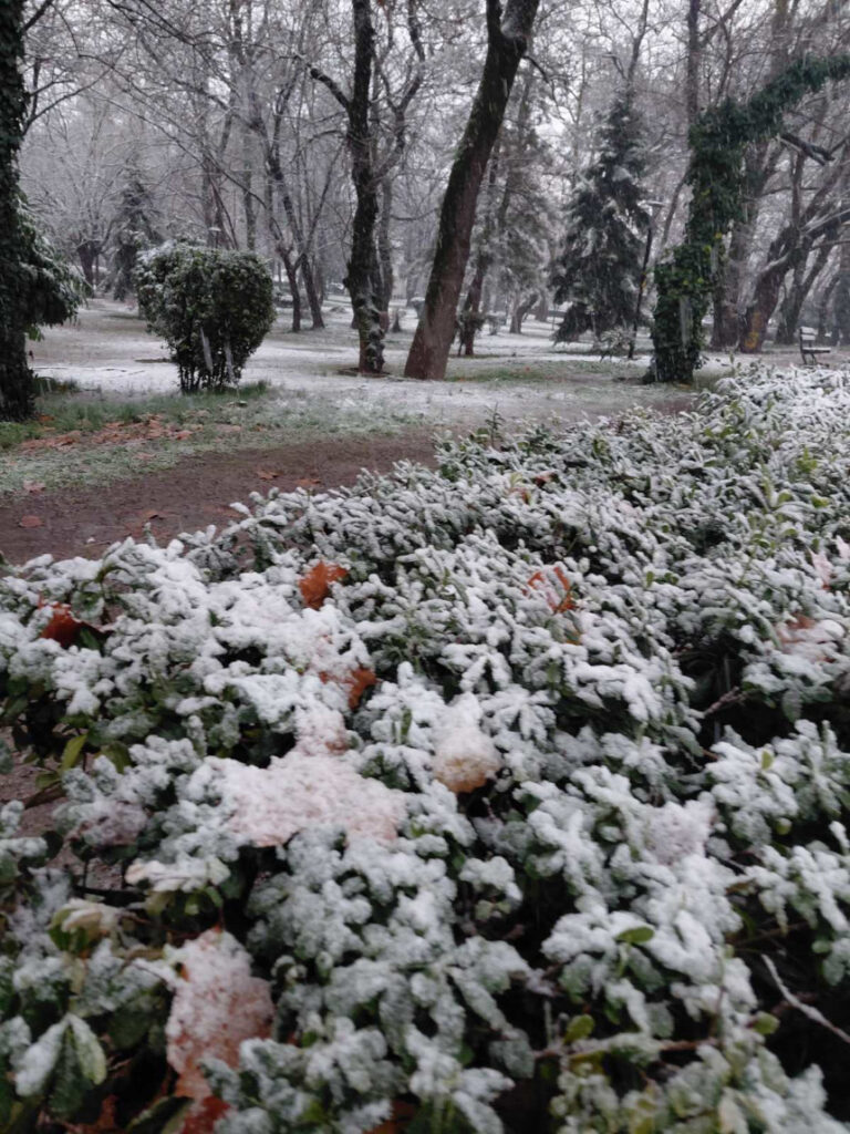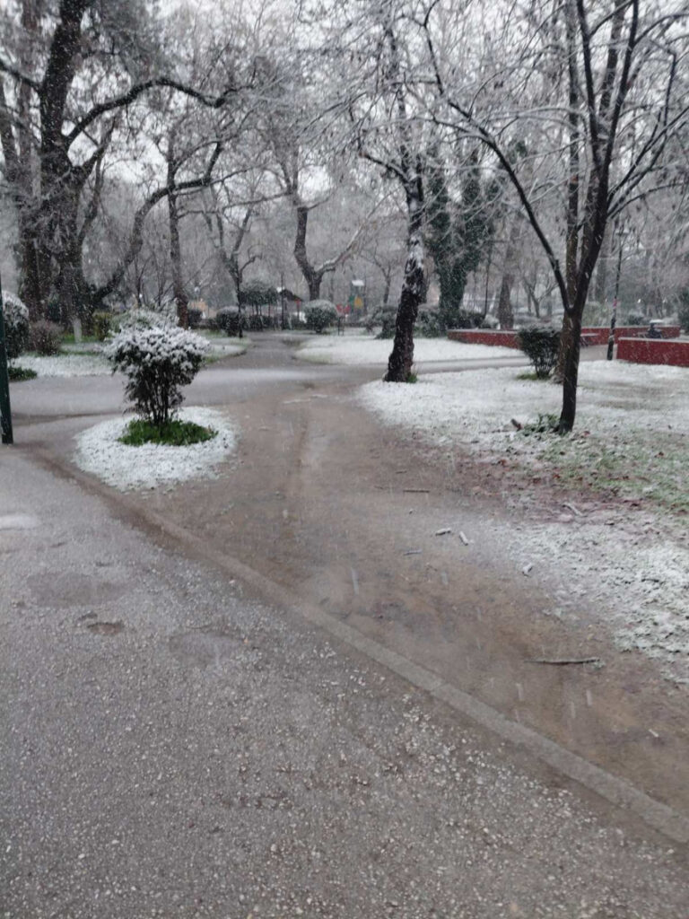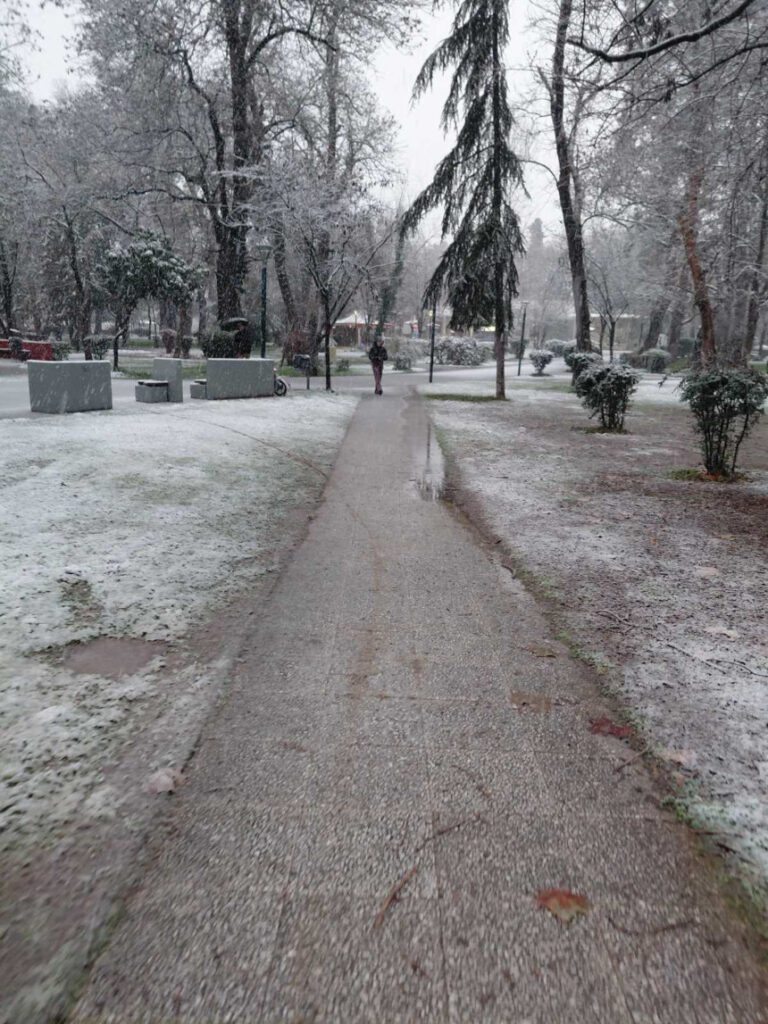 Παρά το γεγονός ότι η χιονόπτωση δεν ήταν έντονη, το «πασπάλισμα» στα δέντρα, τα παγκάκια και τις φυλλωσιές ήταν αρκετό για να αλλάξει τη διάθεση όλων. Οι εικόνες μιλούν από μόνες τους. Τα πολύχρωμα λουλούδια στα παρτέρια του πάρκου δημιούργησαν μια υπέροχη αντίθεση με το λευκό του χιονιού, ενώ τα μονοπάτια, αν και υγρά, καλούσαν τους περαστικούς να σταματήσουν για μια γρήγορη φωτογραφία.