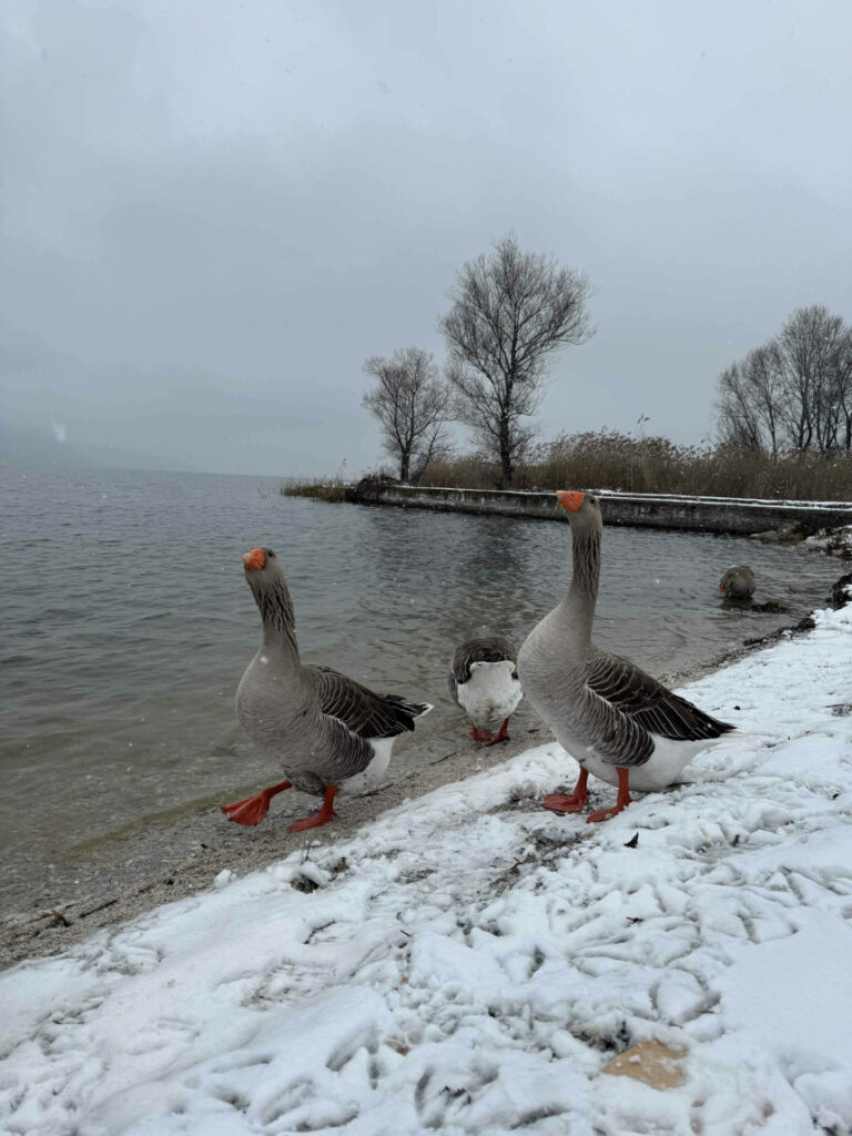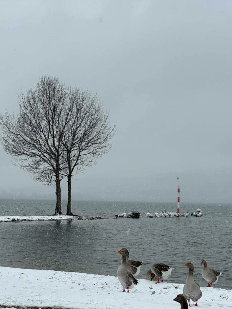 Την ευχαριστούμε θερμά που μοιράστηκε μαζί μας αυτές τις πανέμορφες εικόνες, θυμίζοντάς μας γιατί αυτή η γωνιά της Ελλάδας είναι τόσο ξεχωριστή. Όπως βλέπετε και στις φωτογραφίες, οι πάπιες και οι χήνες παραμένουν το σήμα κατατεθέν της περιοχής. Ακόμα και με το χιόνι να καλύπτει τις όχθες, εκείνες περιφέρονται με μια απαράμιλλη αρχοντιά, δίνοντας ζωή στο παγωμένο τοπίο. Οι χήνες που ποζάρουν στο χιόνι, ατάραχες από το κρύο.