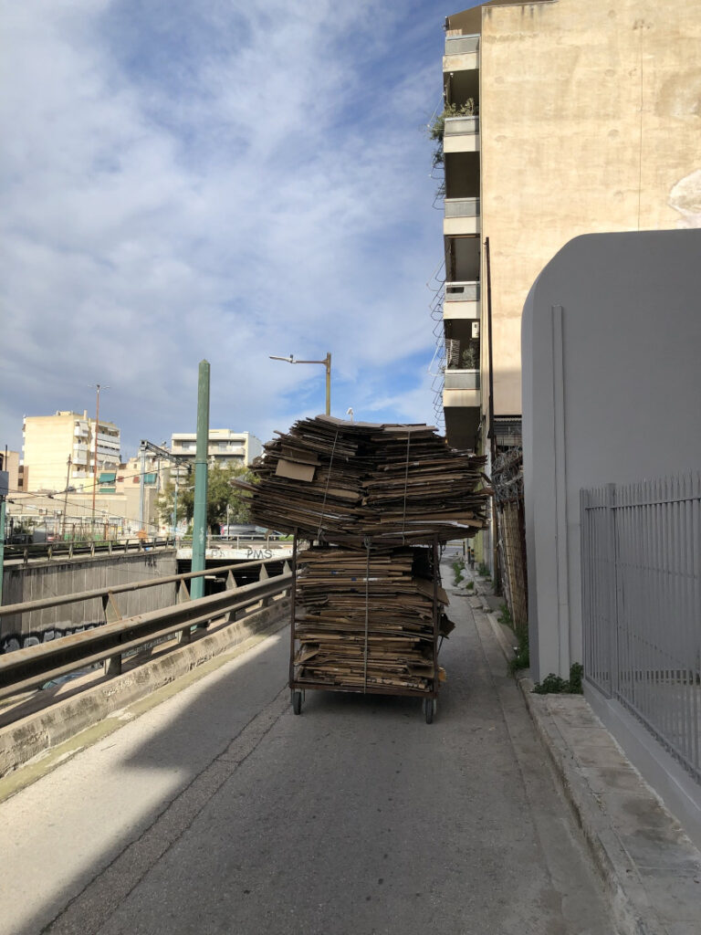 Υπάρχουν στιγμές που η καθημερινότητα μας φέρνει αντιμέτωπους με εικόνες που «γρατζουνάνε» την ψυχή. Χθες το πρωί, στον παράλληλο δρόμο πάνω από τη γέφυρα της Λένορμαν, το βλέμμα μου σταμάτησε σε αυτόν τον άνθρωπο. Δεν ήταν απλά ένας περαστικός. Ήταν η προσωποποίηση της σκληρής βιοπάλης. Μια ζωή στοιβαγμένη σε τέσσερις ρόδες. Με το σώμα σκυμμένο από το βάρος, σαν υποζύγιο μιας άλλης εποχής, έσπρωχνε ένα καρότσι που έμοιαζε έτοιμο να λυγίσει. Εκατοντάδες χαρτόνια, δεμένα με κόπο, στοιβαγμένα με μαθηματική ακρίβεια για να χωρέσει όσο το δυνατόν περισσότερο «μεροκάματο».
