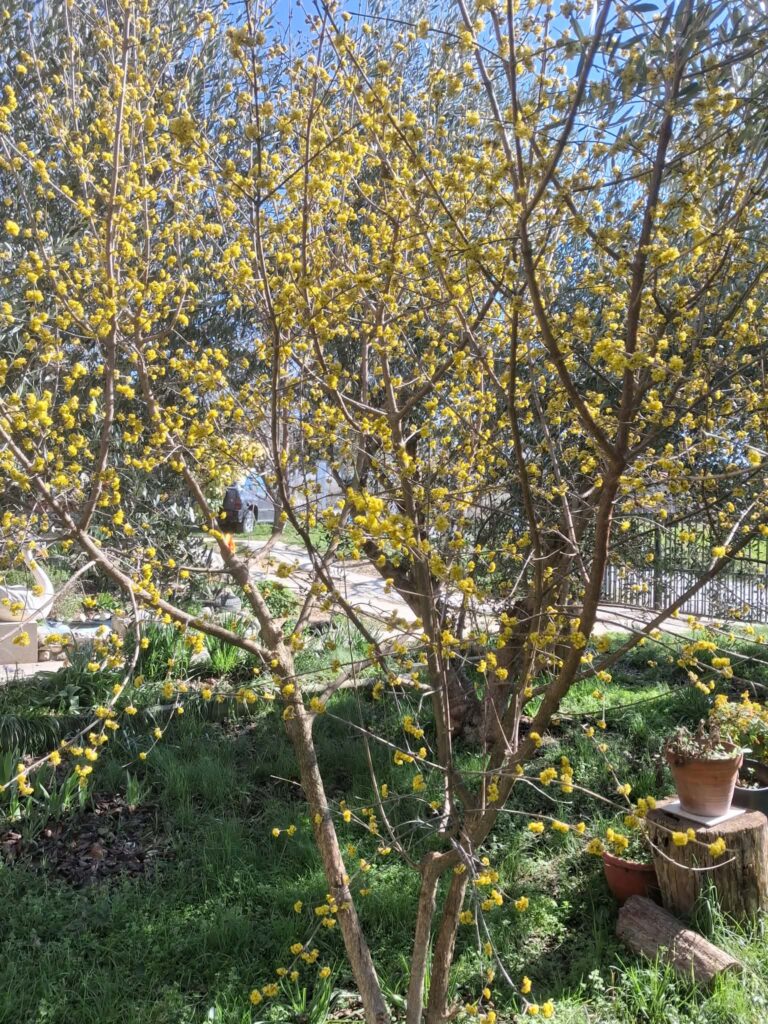 Λίγο πιο πέρα, η κρανιά κάνει τη δική της επανάσταση. Ντυμένη στα κίτρινα, τραβάει το βλέμμα από μακριά, αποδεικνύοντας πως το χρώμα είναι ο καλύτερος τρόπος για να αποχαιρετήσουμε το γκρίζο του χειμώνα. Η ομορφιά όμως δεν βρίσκεται μόνο στους αγρούς, αλλά και στις φροντισμένες γωνιές των χωριών μας. Στην Αναστασιά Σερρών, η αυλή του Ηλία έχει ήδη αρχίσει να «φωτίζει».