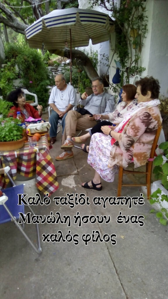 Ζούμε μακριά από την Άνδρο, στην Αθήνα, αλλά οι άνθρωποι της μας κάνανε να αγαπήσουμε το νησί. Δυο από αυτούς τους ανθρώπους, ήταν η Ευαγγελία και ο Μανώλης. Χθες τον χάσαμε. Και το χειρότερο είναι ότι το μάθαμε από το διαδίκτυο. Από την εικόνα που βλέπετε πιο κάτω και που ο καλός μας φίλος Λούης Τριανταφυλλάκης είχε την καλωσύνη να ανεβάσει στο προφίλ μας. Ήταν τότε που είχαμε πάει σπίτι τους μια μέρα και μας φιλοξένησαν.
