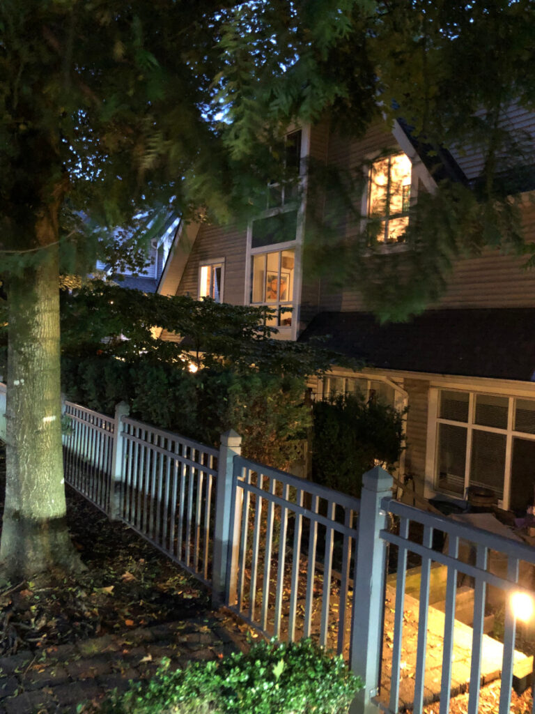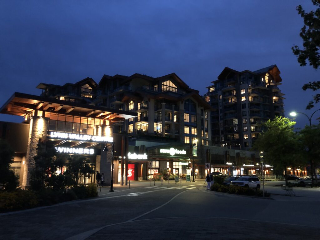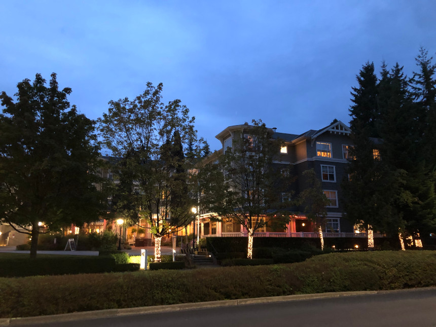 Εκεί, στο λυκόφως, η Lynn Valley μεταμορφώθηκε σε κάτι μαγικό. Τα κτίρια, με την παραδοσιακή τους αρχιτεκτονική (όπως αυτό το όμορφο τετραώροφο που τράβηξα), άρχισαν να λάμπουν. Δεν ήταν μόνο τα φώτα από τα παράθυρα που αποκάλυπταν ζεστές, οικείες στιγμές στο εσωτερικό. Ήταν κυρίως τα φωτεινά λαμπιόνια -όχι, δεν ήταν Χριστούγεννα, αλλά το φως τους στόλιζε τους κορμούς των δέντρων κατά μήκος του πεζοδρομίου.