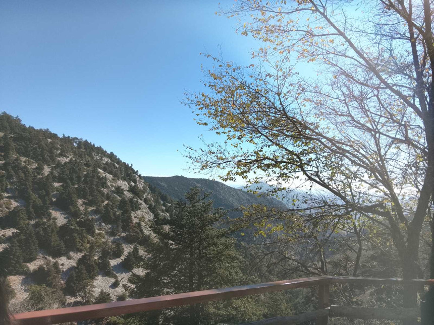 Το περπάτημα στα μονοπάτια του Εθνικού Δρυμού αυτή την εποχή είναι μια εμπειρία για όλες τις αισθήσεις. Ο ήλιος, ακόμα δυνατός, ζεσταίνει τους ώμους, αλλά ο αέρας είναι δροσερός και καθαρός, γεμάτος με το άρωμα του πεύκου και της υγρασίας. Όσο ανεβαίνουμε ψηλότερα, το τοπίο αλλάζει. Τα πυκνά, σχεδόν τροπικά, δάση ελάτης δίνουν τη θέση τους σε πιο ανοιχτούς ορίζοντες. Μέσα από τα σκιερά μονοπάτια, όπως αυτό που μας δείχνει η Σοφία με το διακριτικό κίτρινο σημάδι, νιώθεις την αίσθηση του μυστηρίου και της περιπέτειας. Κάθε βήμα σε οδηγεί βαθύτερα σε έναν κόσμο όπου η φύση είναι ο απόλυτος κυρίαρχος.