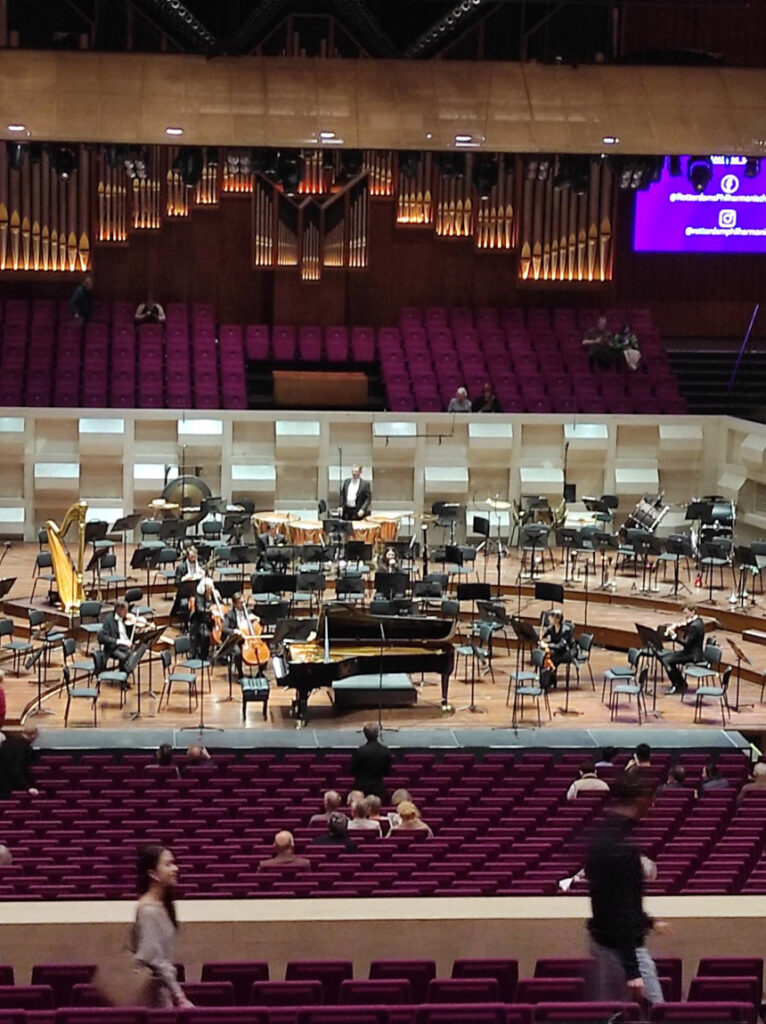 Η ατμόσφαιρα ήταν μαγευτική. Η Grand Hall του de Doelen στο Ρότερνταμ – μια αίθουσα με εντυπωσιακή ακουστική και μοντέρνα αισθητική, με τις βαθιές μωβ καρέκλες και τον ξύλινο διάκοσμο – ήταν το ιδανικό σκηνικό για μια αφιερωμένη στον Μπετόβεν, συναυλία. Οι μουσικοί της ορχήστρας ήταν έτοιμοι, τα όργανα στη θέση τους, το πιάνο στο κέντρο, ενώ η επιβλητική εκκλησιαστική οργάνου δέσποζε στο βάθος. Μια στιγμή υψηλής τέχνης. Ωστόσο, καθώς παρατηρούσαμε την αίθουσα, μια αντίφαση μας χτύπησε.