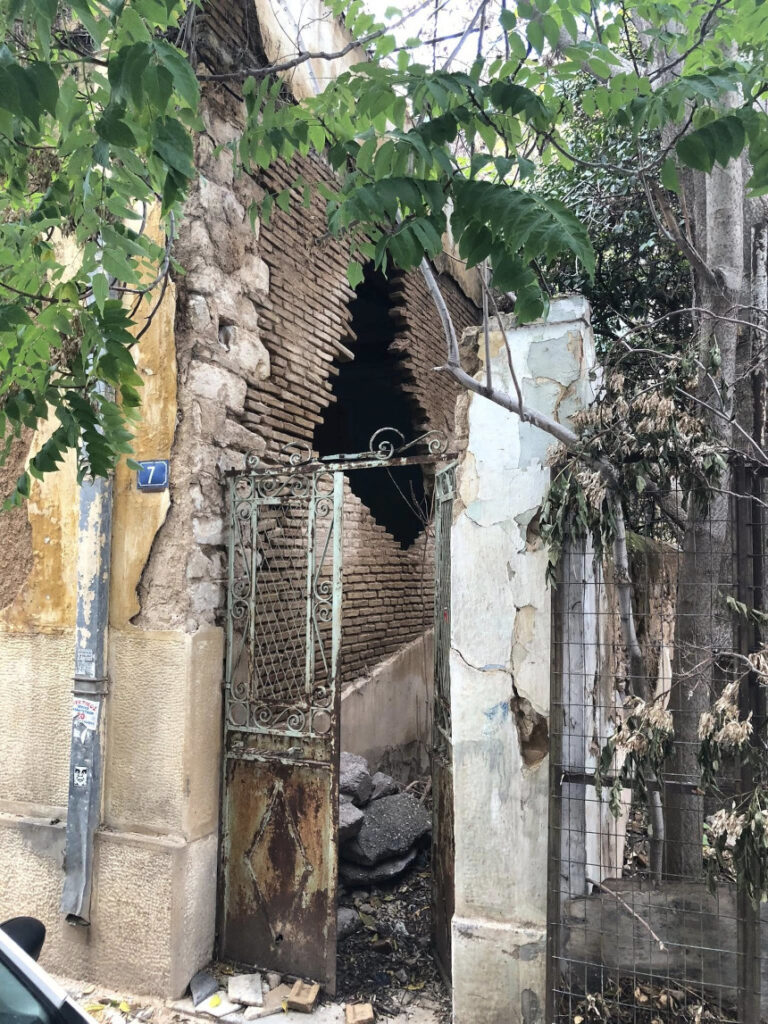 Η οδός Βίαντος στον Κολωνό είναι μια φλέβα της πόλης, αλλά στο νούμερο 7, ο χρόνος έχει σταματήσει. Εκεί, στέκεται ένα κτίριο όχι απλώς παλιό, αλλά τραυματισμένο. Οι ξεφλουδισμένοι τοίχοι, τα μισοξεραμένα κλαδιά, το αγκαλιάζουν σαν νεκρικά χέρια και η σκουριασμένη, μισάνοιχτη σιδερένια πόρτα, φωνάζουν μια ιστορία αποχώρησης και σιωπής. Αυτή η ανοιχτή πόρτα είναι η πρόκληση. Είναι η ρωγμή στον χρόνο, η πρόσκληση να εισέλθουμε εκεί όπου η ιδιωτική ζωή μετατράπηκε σε δημόσιο ερείπιο.
