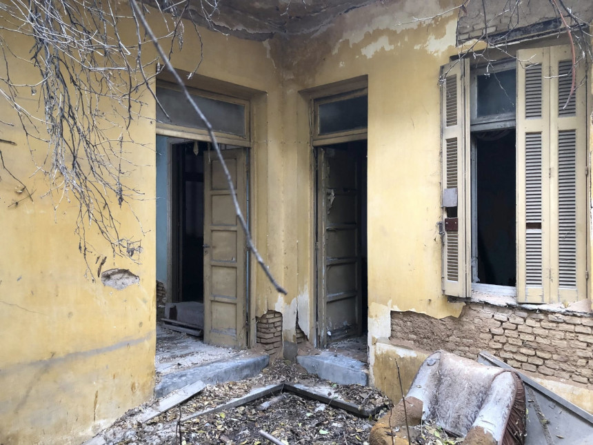 Μόλις περνάς τη σκουριασμένη εξώπορτα, η πόλη χάνεται. Μένει μόνο η οσμή της υγρασίας, της σκόνης και του μούχλιασμένου ξύλου. Ο εξωτερικός χώρος του ισογείου μοιάζει με κεντρική σκηνή σε ένα έργο που διακόπηκε βίαια. Τα κίτρινα χρώματα των τοίχων, κάποτε ζεστά και φιλόξενα, έχουν γίνει πλέον σκιές. Δύο ανοιχτές, κενές πόρτες οδηγούν σε σκοτεινά δωμάτια – οι πύλες του «πριν». Στη γωνία, μια πολυθρόνα, παραδομένη και σάπια, μαρτυρά την τελευταία ανάπαυση κάποιου.