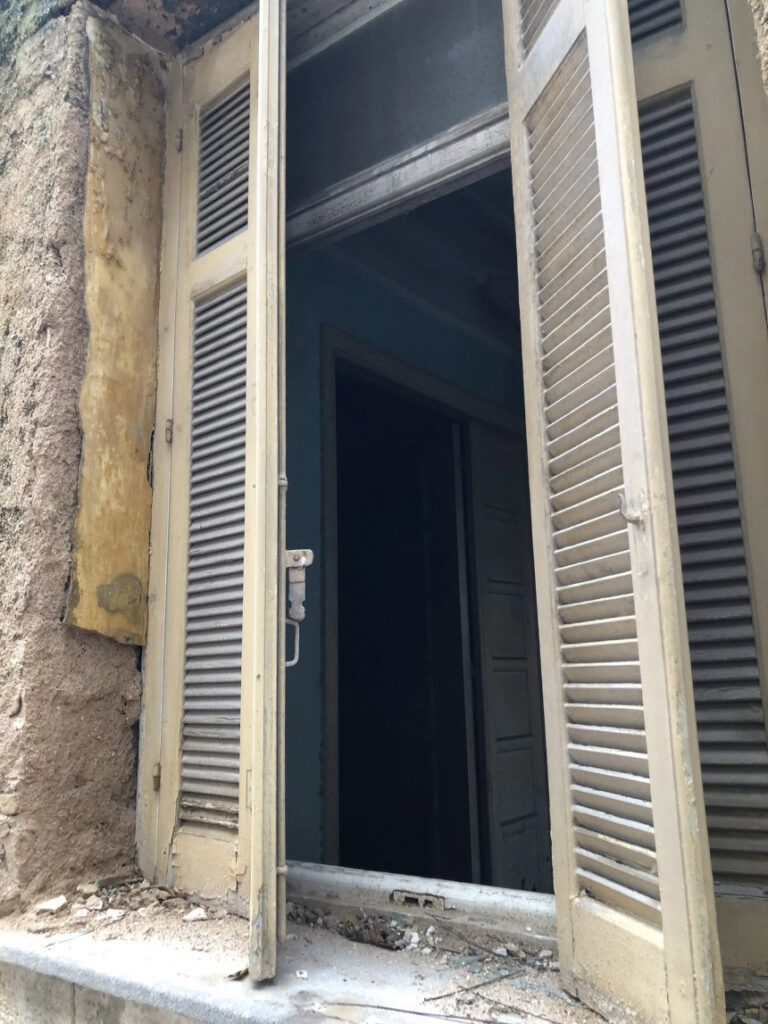 Και μετά, το παράθυρο… Οι ξύλινες περσίδες, μισάνοιχτες, ίσα που αφήνουν το φως να μπει, αποκαλύπτοντας το χάος: σκουπίδια, σκόνη, και η μαύρη τρύπα ενός εσωτερικού χώρου. Εκεί μέσα, το φως πεθαίνει. Τι έκανε άραγε τους ενοίκους να φύγουν; Σε τέτοια κτίρια, η απάντηση δεν είναι ποτέ μία. Ίσως ήταν η κληρονομιά που έγινε βάρος. Ίσως ήταν ο σεισμός που άφησε σημάδια και φόβο. Ίσως ήταν η οικονομική κρίση που έκανε ασύμφορη την επισκευή. Ή ίσως, και εδώ κρύβεται η ποίηση, ήταν μια ιστορία πιο προσωπική.