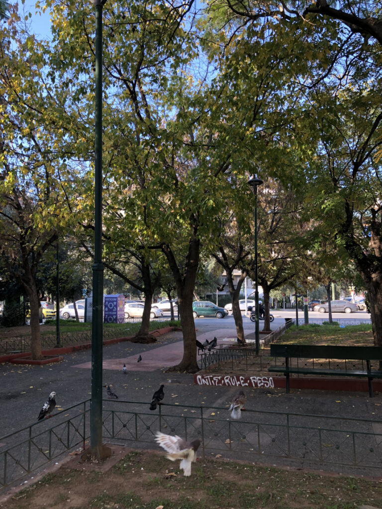 Στην καρδιά της Αθήνας, εκεί που η βουή της πόλης και η κίνηση των αυτοκινήτων μοιάζουν να μην σταματούν ποτέ, υπάρχει μια γωνιά που ο χρόνος δείχνει να κυλά με διαφορετικούς ρυθμούς. Η Πλατεία Αττικής, με το σιντριβάνι της και τα ψηλά της δέντρα, αποτελεί ένα καταφύγιο – όχι μόνο για τους ανθρώπους, αλλά και για τους πιο πιστούς της θαμώνες: τα περιστέρια. Αν σταθείς για λίγα λεπτά στην πλατεία, θα τα δεις παντού. Στοιχισμένα πάνω στα πράσινα μεταλλικά κάγκελα, σαν να περιμένουν υπομονετικά το επόμενο “ραντεβού” τους, ή να περπατούν νωχελικά ανάμεσα στα παγκάκια.