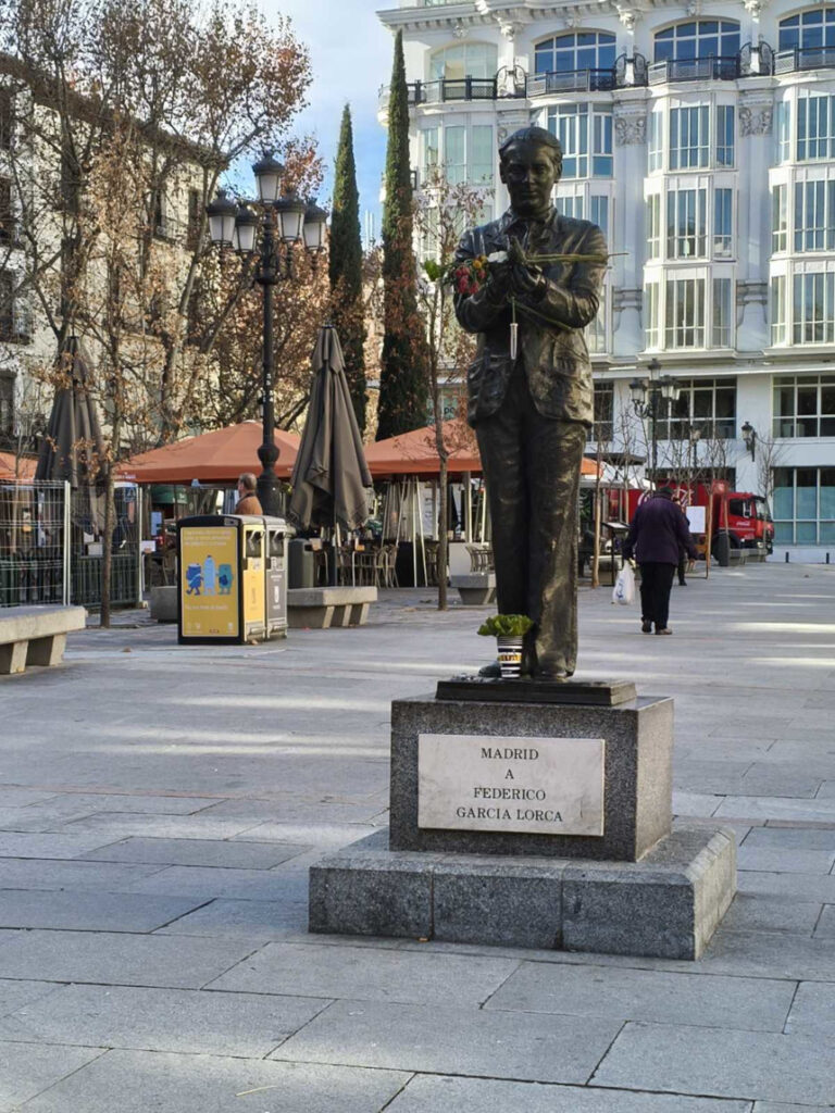 Στην καρδιά του Barrio de las Letras (Η Συνοικία των Γραμμάτων), η Μαδρίτη τιμά τους ανθρώπους που της έδωσαν φωνή. Το άγαλμα του Φεδερίκο Γκαρθία Λόρκα στην Plaza de Santa Ana στέκει εκεί ως μια αιώνια υπενθύμιση της ισπανικής ψυχής. Με μια κουκουβάγια στα χέρια —σύμβολο σοφίας και ποιητικής ενόρασης— ο Λόρκα μοιάζει να παρατηρεί τη ζωή της πόλης να κυλά, από τα παραδοσιακά tapas bars μέχρι τα μεγάλα θέατρα.