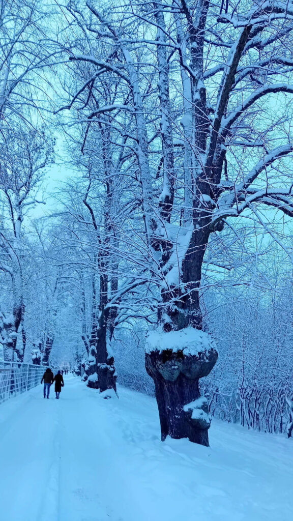 Στα πάρκα και στα δάση της Στοκχόλμης, το σκηνικό θυμίζει παραμύθι. Τα δέντρα, φορτωμένα με φρέσκο χιόνι, σχηματίζουν φυσικές στοές πάνω από τα μονοπάτια. Εκεί, το μπλε του σκανδιναβικού λυκόφωτος συναντά το καθαρό λευκό, δημιουργώντας μια ατμόσφαιρα που σε προσκαλεί να περπατήσεις και να αναπνεύσεις τον κρύο, καθαρό αέρα. Ευχαριστούμε θερμά τη Mela και τη Dina που μας έδωσαν τη χαρά να «ταξιδέψουμε» μαζί τους σε αυτή την πρώτη λευκή μέρα του χρόνου!