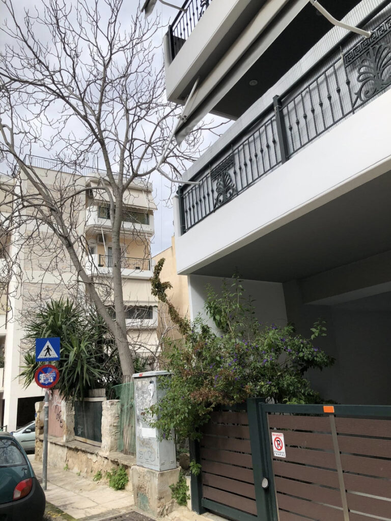 Εκεί, μια ανάσα από το Μετρό, η πόλη αποκαλύπτει το αληθινό της πρόσωπο. Σε αυτόν τον σύντομο περίπατο, στάθηκα σε τρία σημεία που μου τράβηξαν την προσοχή: Από τη μία, η κλασική γοητεία των παλιών διώροφων με τα πράσινα παντζούρια και τις κεραμοσκεπές —κτίρια που αντέχουν στον χρόνο και κουβαλούν μνήμες μιας άλλης Αθήνας— και από την άλλη, οι σύγχρονες γραμμές των νέων πολυκατοικιών με τα προσεγμένα μπαλκόνια.