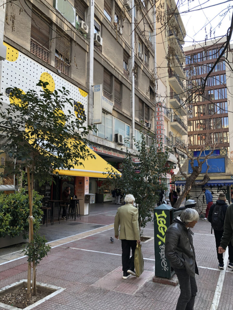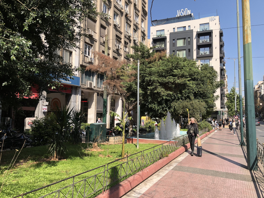 Εκεί, από νωρίς το πρωί, έβρισκες τον μπογιατζή, τον υδραυλικό ή τον τεχνίτη για τις δουλειές του σπιτιού. Μια πιάτσα με δικούς της κώδικες και μια αίγλη λαϊκή, αυθεντική. Σήμερα, αυτή η δραστηριότητα αποτελεί μακρινή ανάμνηση. Οι πρόσφατες εικόνες της πλατείας αποτυπώνουν την ερημιά μιας μεταβατικής εποχής, εκεί που ο χειμώνας συναντά την άνοιξη. Παρά την εγκατάλειψη, το σιντριβάνι παραμένει σε λειτουργία, μια μικρή όαση δροσιάς ανάμεσα στα γκρίζα κτίρια και τα γκράφιτι.