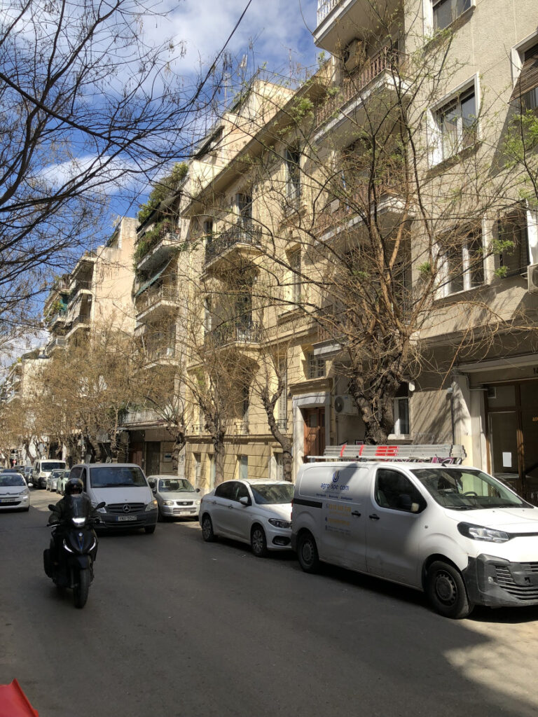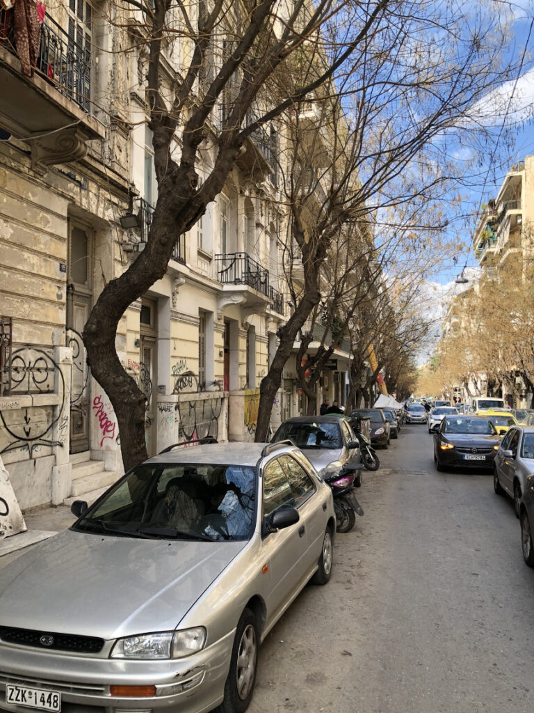 Μετά από αρκετή ώρα αναζήτησης και ενώ η ιδέα του ιδιωτικού parking αρχίζει να μοιάζει με τη μόνη λύση, συνέβη το απρόσμενο. Εκεί που η οικιστική γοητεία των παλιών αθηναϊκών κτιρίων συναντά τη βουή του δρόμου, βρέθηκε η θέση.