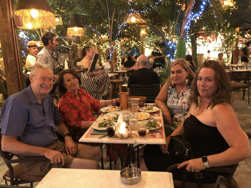 36 χρόνια αγάπης, συντροφικότητας και όμορφων στιγμών – τους ευχόμαστε να συνεχίσουν έτσι, με υγεία και χαμόγελα! Ναι, για τον Κώστα και την Άννυ λέμε, τα παιδιά μας. Η Άννυ που είναι κοντά μας, από τη Δευτέρα το απόγευμα, ήθελε να βγούμε έξω χθες βράδυ, ακριβώς γι’ αυτή τη βραδιά. Και κλείσαμε στο Βολιώτικο Τσιπουράδικο στου Ψυρρή και στον υπέροχο κήπο τους, μετά μουσικής. Ήταν μαζί και η φίλη της, Κριστίν.