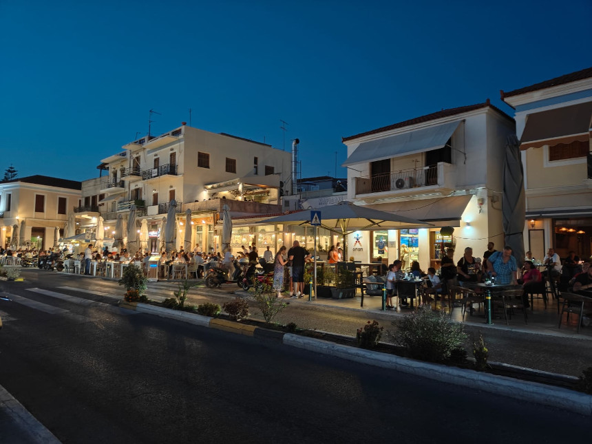 Οι πεζόδρομοι σφύζουν από κίνηση, με ντόπιους και τουρίστες να απολαμβάνουν τον περίπατό τους. Τα παραδοσιακά κτίρια, πολλά από αυτά με έντονη την αρχιτεκτονική του 19ου αιώνα, φωτίζονται απαλά, αναδεικνύοντας την ιστορική τους γοητεία. Οι καφετέριες, οι ταβέρνες και τα μπαρ, κατά μήκος της παραλιακής οδού, είναι γεμάτα κόσμο. Από μέσα τους αναδύονται ήχοι συζητήσεων, γέλια και διακριτική μουσική, δημιουργώντας μια αίσθηση ζεστασιάς και φιλοξενίας.
