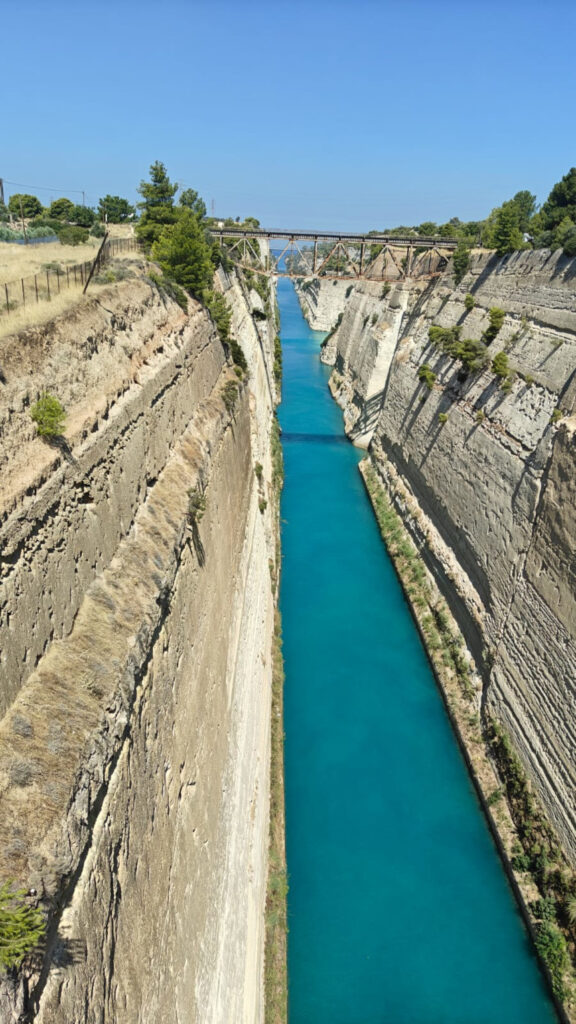 Χθες ήταν μια μέρα εκδρομής… Με τη ζέστη να σφίγγει το καλοκαίρι, η Άννυ, η Κριστίν και μείς μαζί τους, αποφασίσαμε να κάνουμε μια στάση στον Ισθμό της Κορίνθου. Ήταν μια αναζωογονητική ανάπαυλα στον δρόμο μας για το Τολό και το Ναύπλιο. Η θέα από τη γέφυρα ήταν εκπληκτική. Το κανάλι, μια βαθιά, στενή σχισμή, έκοβε τη γη στα δύο. Την Πελοπόννησο από τη Στερεά Ελλάδα.
