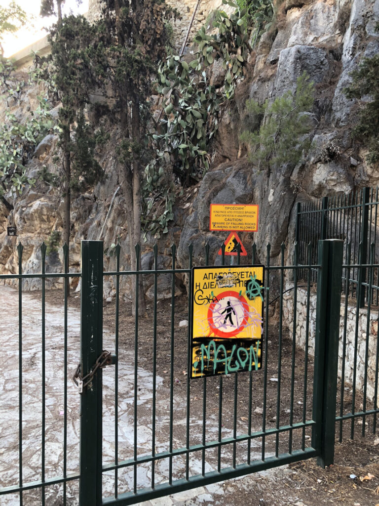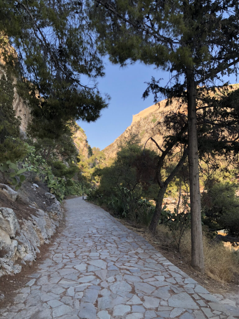 Ήθελα να θυμηθώ μια μαγική διαδρομή, εκείνη που αγκαλιάζει τον βράχο της Ακροναυπλίας στο Ναύπλιο. Την είχα κάνει αρκετές φορτές στο παρελθόν και ήξερα πόσο ωραία ήταν. Η διαδρομή ξεκινά με μια αίσθηση μυστηρίου, καθώς ο πεζόδρομος είναι κλειστός από μια σιδερένια περίφραξη, πάνω στην οποία μια πινακίδα με την ένδειξη «Απαγορεύεται η διέλευση» μας προτρέπει να είμαστε προσεκτικοί.