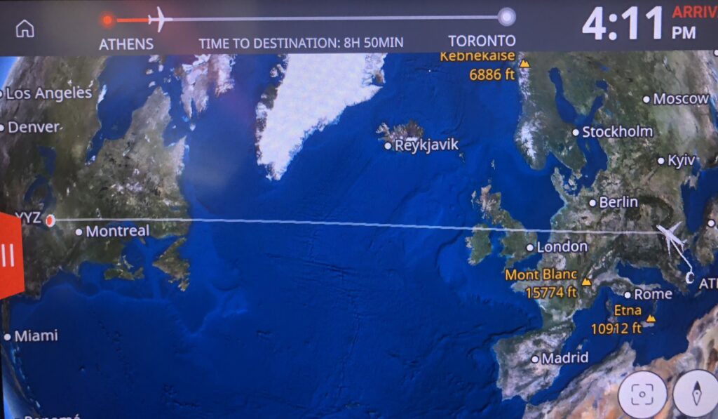 Η εμπειρία της πτήσης μας από την Αθήνα στο Τορόντο κι από εκεί για Βανκούβερ… Να πετάς στα 32.000 πόδια ή για να το καταλάβουμε καλύτερα στα 9.754 μέτρα ύψος με ταχύτητα 907 χιλιόμετρα την ώρα ή κάτι λιγότερο. Ασύλληπτα νούμερα για τους ανθρώπους που πατούν τα πόδια τους στη γη… Φυσικά κι εμείς δεν τα ξέραμε.
