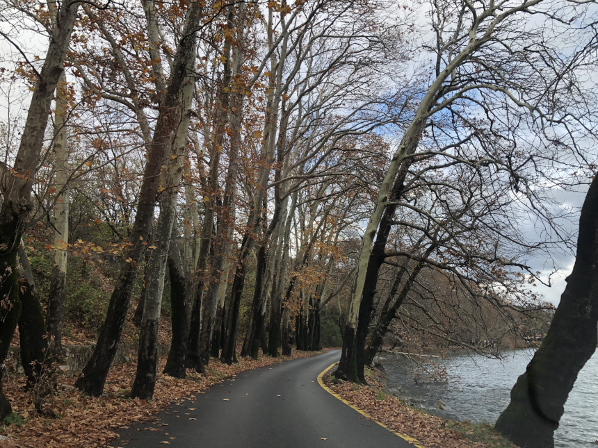 Η λίμνη της Καστοριάς (ή λίμνη Ορεστιάδα) είναι πραγματικά ένα από τα ομορφότερα τοπία στην Ελλάδα, ειδικά με αυτή την ατμόσφαιρα του φθινοπώρου/χειμώνα, με τα γυμνά πλατάνια και τα πεσμένα φύλλα. Η διαδρομή γύρω από τη λίμνη, ο “Γύρος της Λίμνης”, είναι μία από τις πιο γνωστές και αγαπημένες βόλτες στην περιοχή. Είναι εμφανές ότι ο δρόμος είναι στρωμένος με την χαρακτηριστική πλατανοστοιχία που ακουμπά σχεδόν στο νερό, δημιουργώντας μια μοναδική αίσθηση. Περισσότερα σε λίγο, εδώ στον ΘΡΑΨΑΝΙΩΤΗ…